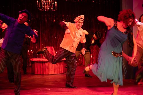 Among comedic foils who make their way into the mix are Kitty (SRT cohort and choreographer Sarah Schori), a wannabe leading lady showgirl; two gangsters posing as pastry chefs (regional/national actors and SRT cohorts Alex Figueroa and Gabriel Rodrigues); and Aldolpho (Lee, in a zany-fun, wackily over-the-top role).