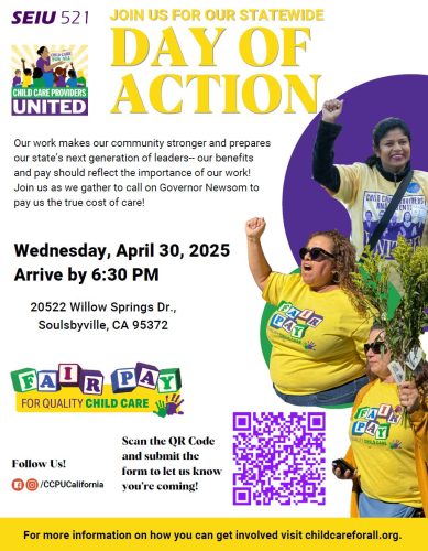 Strengthening community support and advocating for fair pay in childcare through a statewide day of action on April 30, 2025.