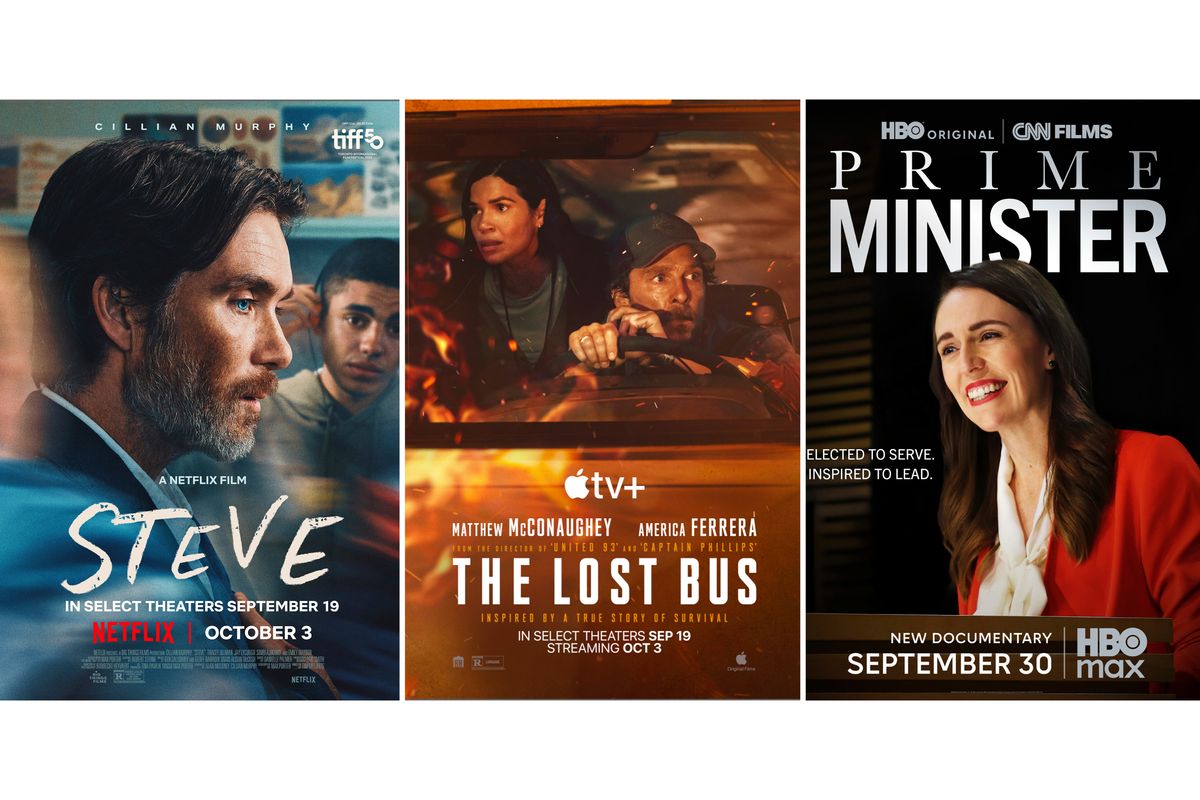 — Matthew McConaughey plays the real bus driver who drove 22 elementary school students to safety during 2018’s Camp Fire that engulfed Paradise, California, in the new film “The Lost Bus,” streaming Friday, Oct. 3 on Apple TV+. America Ferrera co-stars as the teacher who went along for the ride, expecting it to be a straightforward drop off at a nearby school. Paul Greengrass directed the film like an old-fashioned disaster movie, I wrote in my review, adding, “it’s impossible to take your eyes off the screen, away from the inferno and the sense of our own smallness and helplessness to ‘battle it.’”