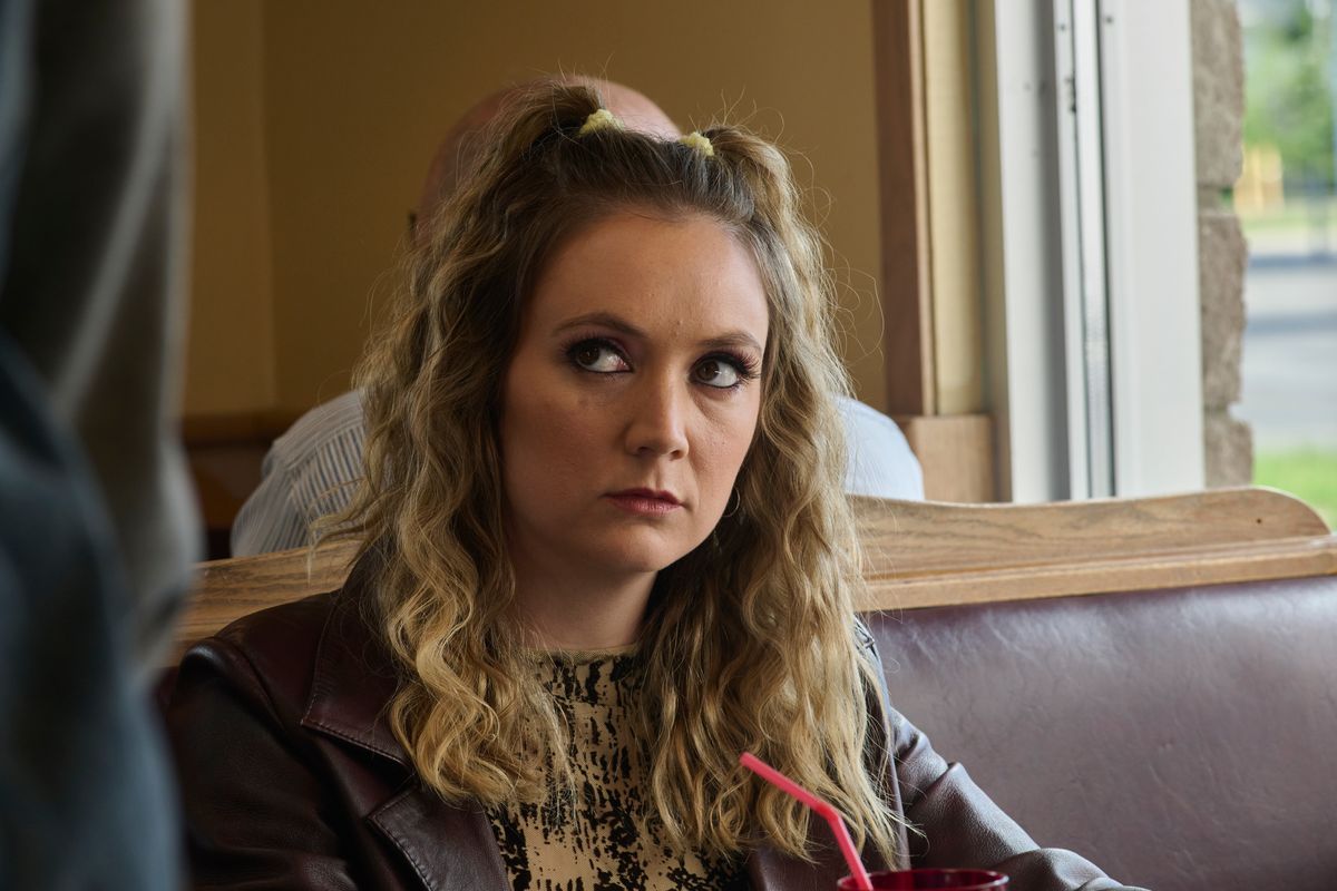Meg — played with lovely comic timing by a languid Kaya Scodelario — brings her young children to a dangerous payoff meet because she couldn’t get child care and loses her cool when she’s mocked for missing a yoga class. “Have a good day. Make good choices,” she tells her kids even as she clearly doesn’t.