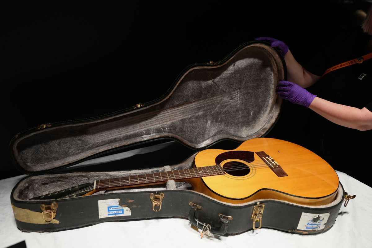 Next to it is displayed a brief rejection letter Bowie received from The Beatles’ record label in 1968.