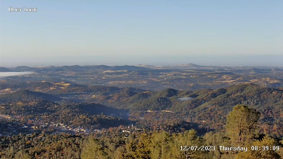 A view overlooking Sonora and Stockton street from our Eye in the Sky webcam. Showing the many trees of Tuolumne County and the pristine air of the wilderness affectionately referred to as “God’s County”