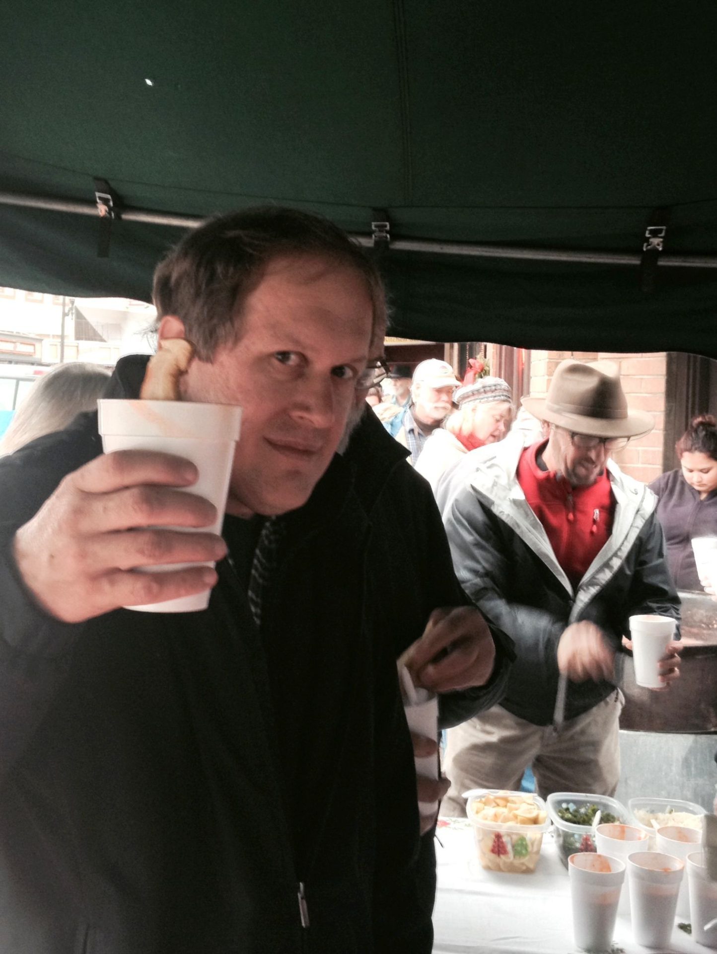 As folks continue to feed and visit, 4-year-old Katelin K., wanders through the tent. Her menu favorite? “Popcorn,” she says, with a giggle, adding, “Happy Holidays!”