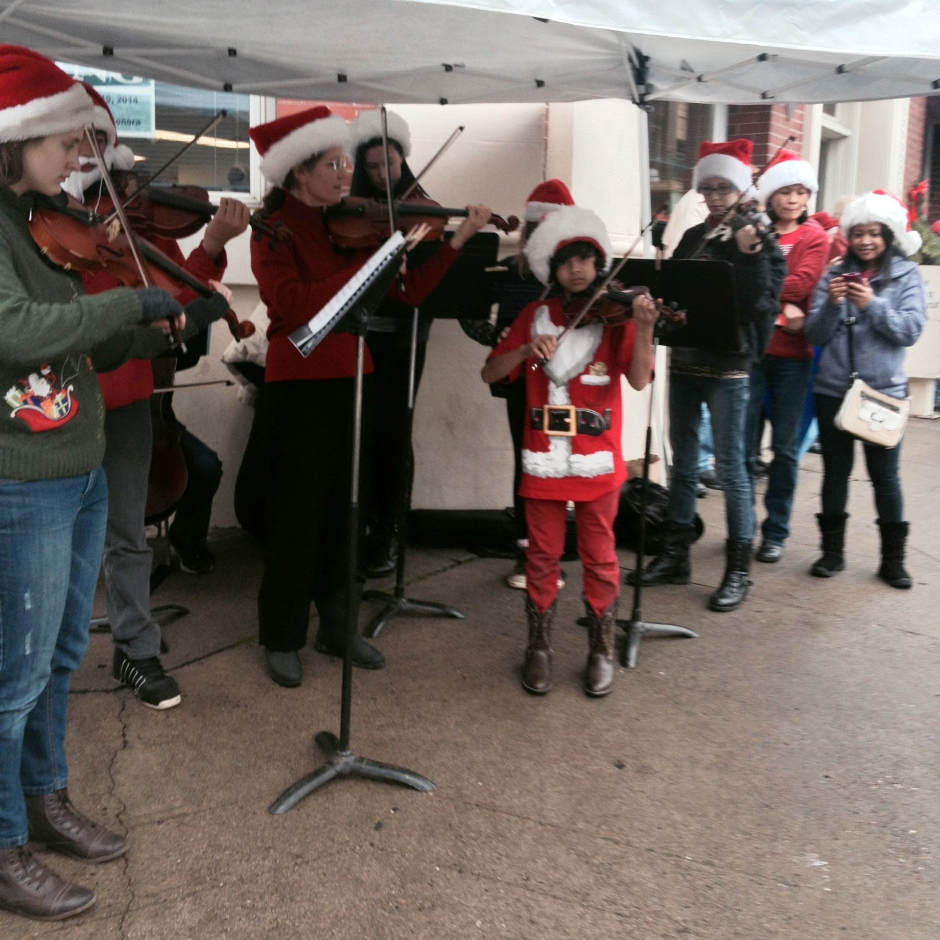 As a street orchestra of string playing youths and a sassy group of flash dancers performed, the serving line to the cooks’ tent set up just off Washington Street in downtown Sonora backed up the sidewalks for nearly three blocks, past Coffill Park. Waiting, chatting and eating, residents enjoyed the beloved long-running holiday tradition founded by local resident Galen “Mutz” Mutzner. While no one keeps stats on yearly numbers served, Mutz has said that someone estimated more than 700 folks served in one recent year.