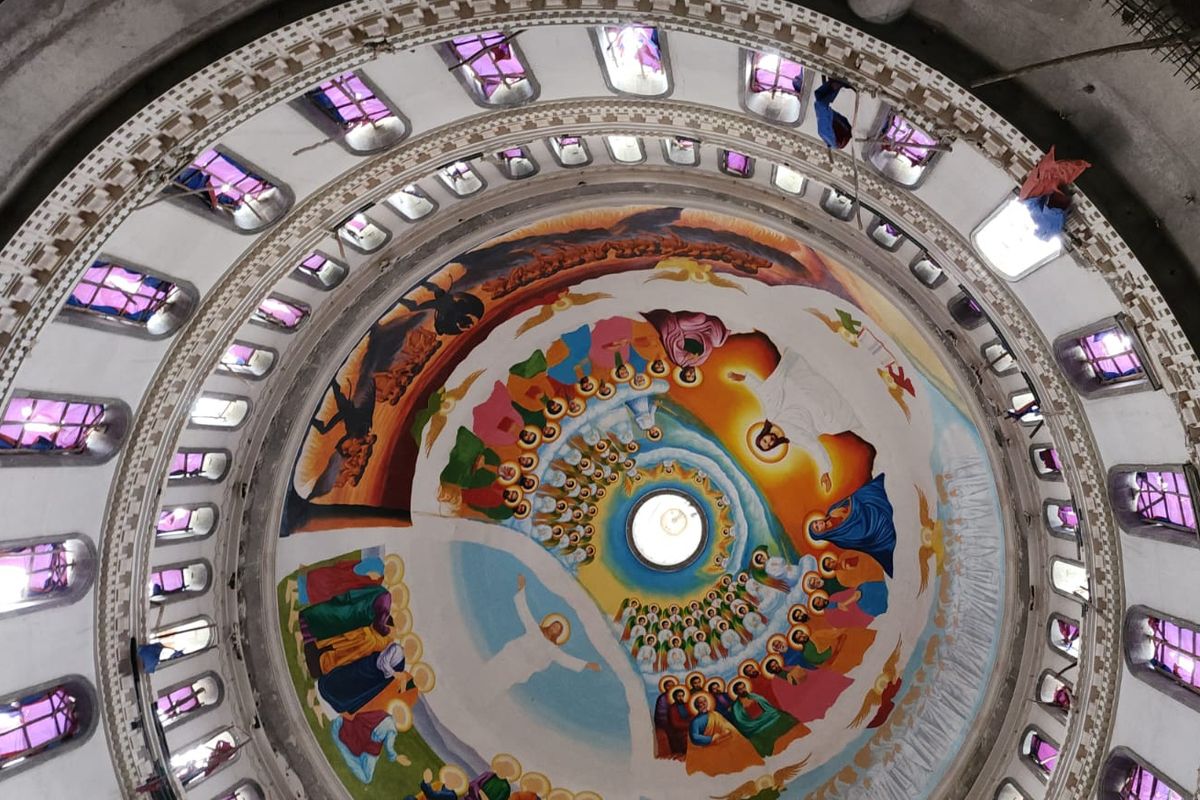 Many worshippers had climbed up the wooden scaffolding to see a ceiling mural when the support structure collapsed, according to witnesses.