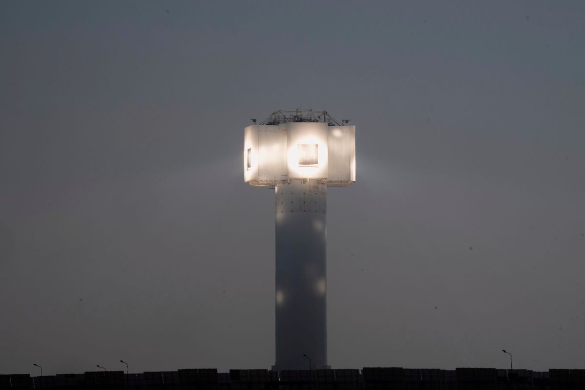 The mirrors tilt to varying degrees throughout the day, tracking the sunrays and projecting them onto a tower. The tower houses a receiver that absorbs intense heat, boils water and produces high-pressure steam. This is then converted into 50 megawatts of electricity — enough to power over 40,000 households for 24 hours.