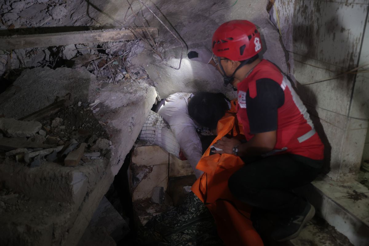 “We have been running oxygen and water to those still trapped under the debris and keeping them alive while we work hard to get them out,” Sigit said. He added that rescuers saw several bodies scattered under the rubble, but that they focused on saving those who were still alive.