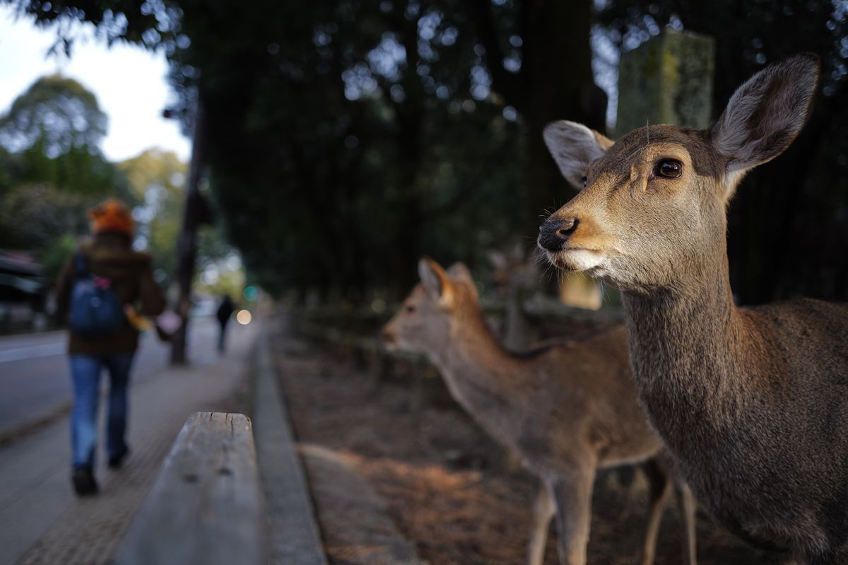 NARA, Japan (AP) — In Japan’s ancient capital, Nara, deer moved through grass fields and shaded paths, lowering their heads toward visitors holding special crackers made just for them.