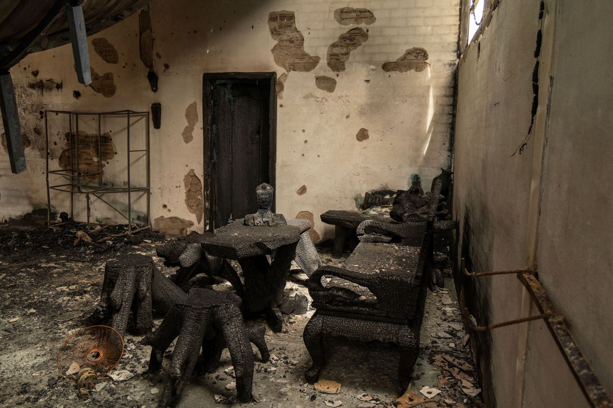O’SMACH, Cambodia (AP) — Shattered glass, torched motorcycles and a burned bust of Buddha awaited 63-year-old Soth Sim as he returned to his home in Phrong village near the Cambodia-Thailand border where fighting raged just a few days ago.