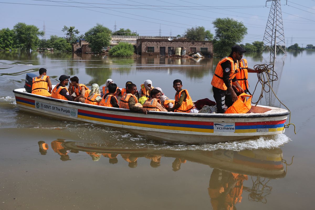 According to the Pakistan Meteorological Department, the Ravi, Chenab, and Sutlej rivers are all in high flood, with water levels reaching the danger mark. Jalalpur Pirwala lies at the confluence of the Chenab and Sutlej rivers before they flow south toward Sindh province, where evacuations are underway in anticipation of flooding.