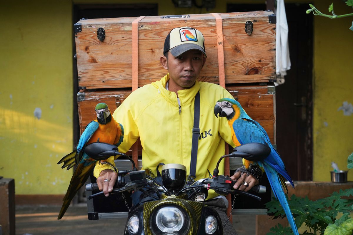 Photos show how an Indonesian motorbike mechanic became a macaw trainer