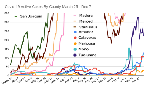 Merced – 111, Mono – 1, San Joaquin – 404, Stanislaus – 248, Tuolumne – 3