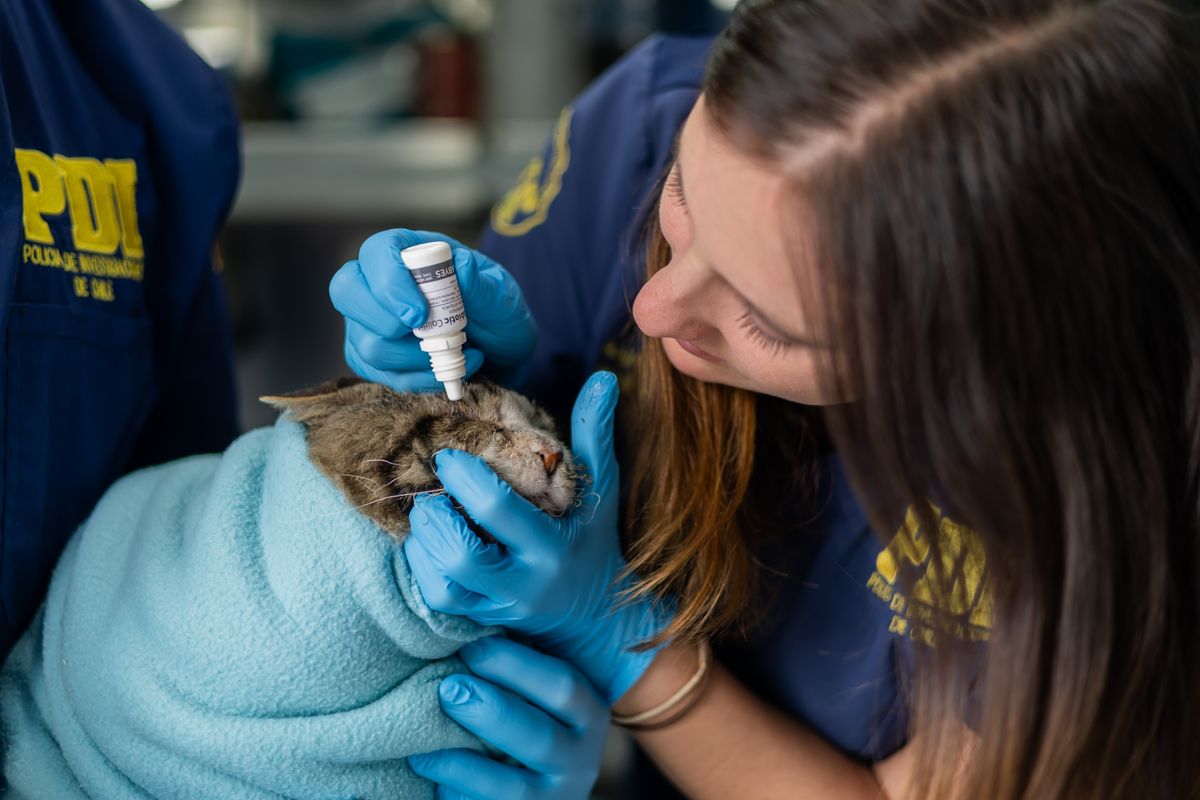 “We usually find cats that were sheltering in small corners and that survived both the fire and the days that followed,” said veterinarian Juan Vivanco, who also works in the unit.