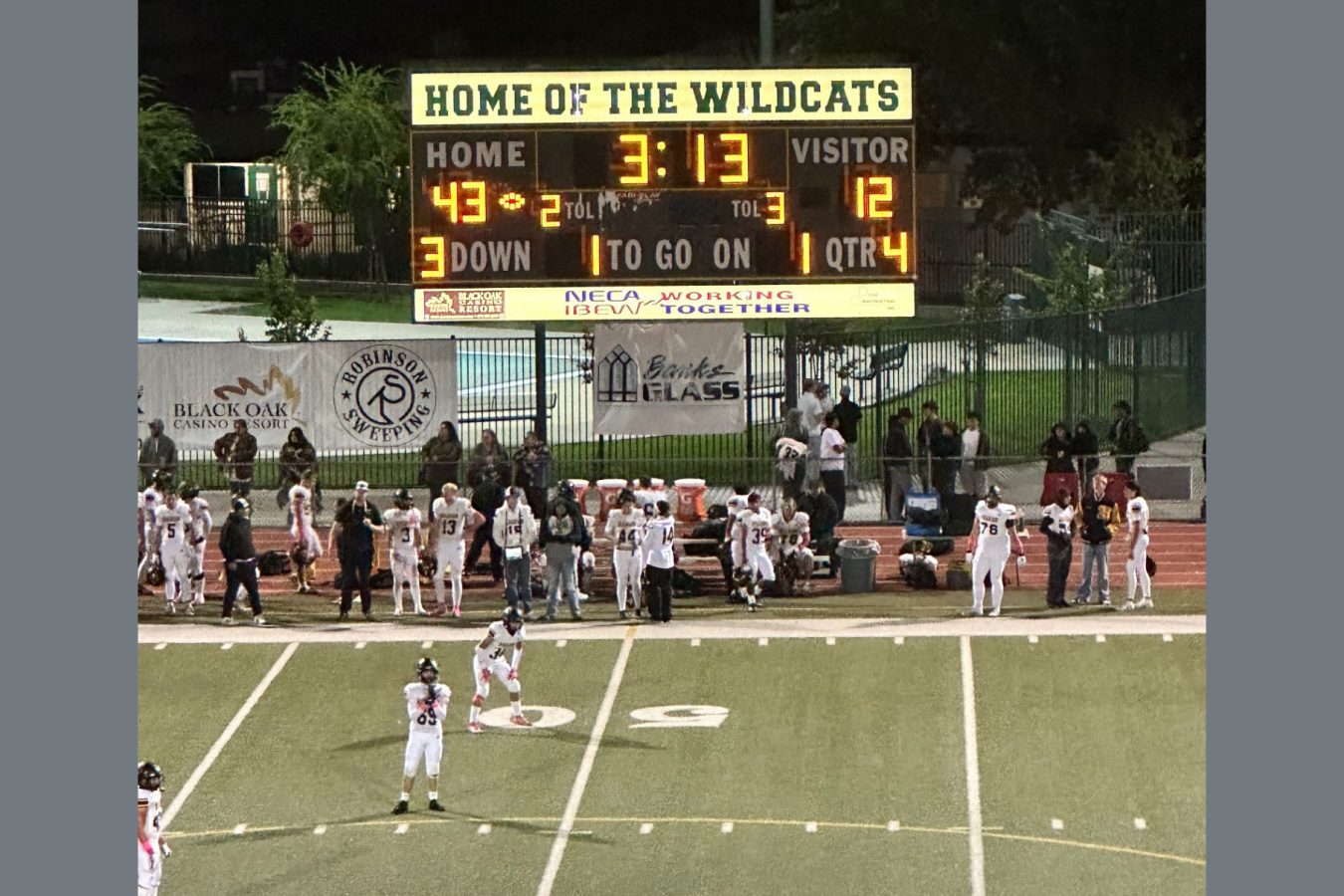 In an exciting game where both teams took to the air in a bid to win. The Wildcats were able to shine on offense and defense with a convincing 43-12 win. The Wildcats won the coin toss and deferred, then stopped the Huskies’ run game, forcing a punt. The Wildcats’ offense moved the ball but was held short of the goal line and settled for a 38-yard field goal from Estrella. On their next offensive drive, quarterback Eli Ingalls connected with a wide-open Cash Byington for a walk-in touchdown. The same play in the second quarter resulted in a second wide-open touchdown for Byington, giving the Wildcats a 17-0 lead. Hughson was able to finally put points up on the board with a deep pass and a blown coverage. Sonora answered with a potentially record-breaking field goal by kicker Estrella.