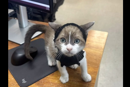 Jamestown, CA – Tuolumne County Animal Control (TCAC) improvises to help the feline recover from a neck injury, and the design doubles as a Halloween costume.