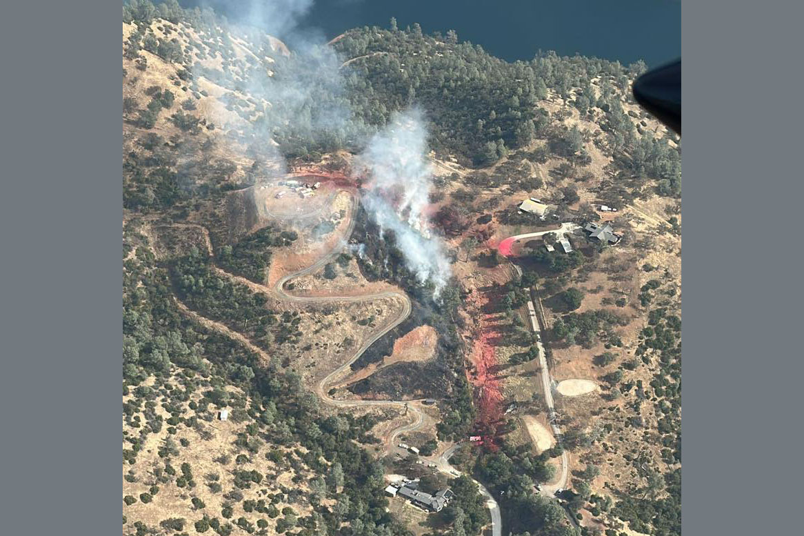 Update at 1:40 p.m.: CAL Fire is reporting that the forward spread of the Jackson Fire, a vegetation fire that was threatening two structures, has been stopped at an estimated 3 to 5 acres in size. Crews will work towards full containment and then mop up for the next couple of hours. What ignited the blaze is under investigation.