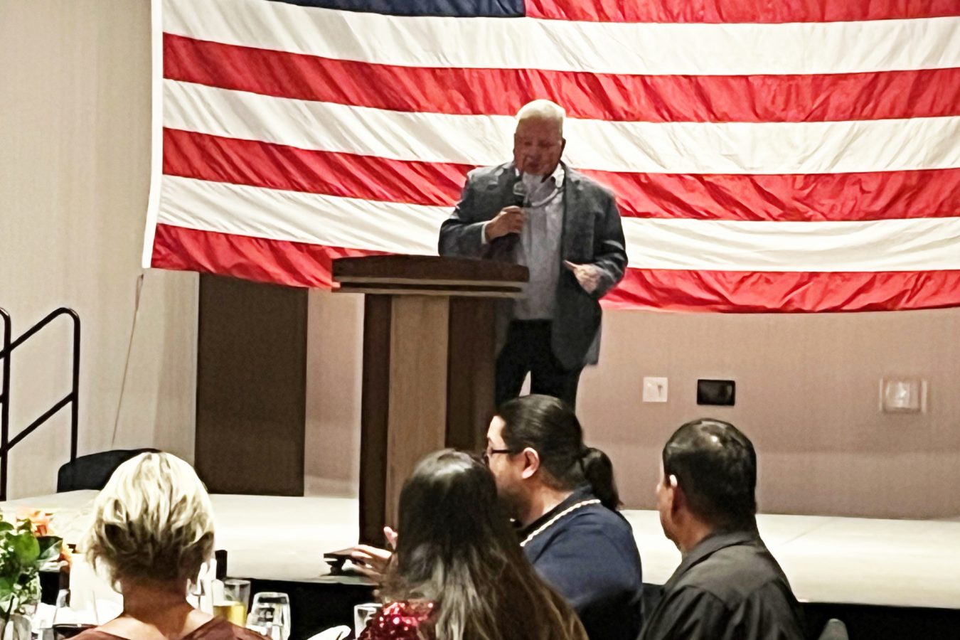 The featured speaker was Mariposa County Sheriff’s Office Captain Wes Smith, who lost his Midpines home in the July 22, 2022, Oak Fire that burned 19,244 acres of vegetation, 127 residential structures, and 66 outbuildings, as detailed here. He also served as the Office of Emergency Services for the county and told the packed house how he immersed himself in work to make it day by day. He also urged victims to reach out and seek help.