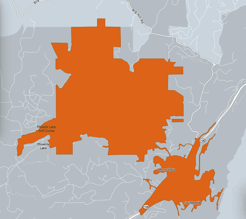 Original story posted at 7:41 am: Sonora, CA — 95 PG&E customers lost electricity at around 6:30 am.