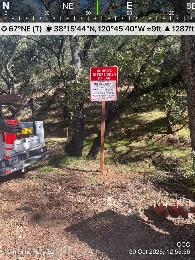San Andreas, CA – Illegal dumpers beware: Calaveras County Public Works is putting up signs to alert anyone who litters about the consequences.