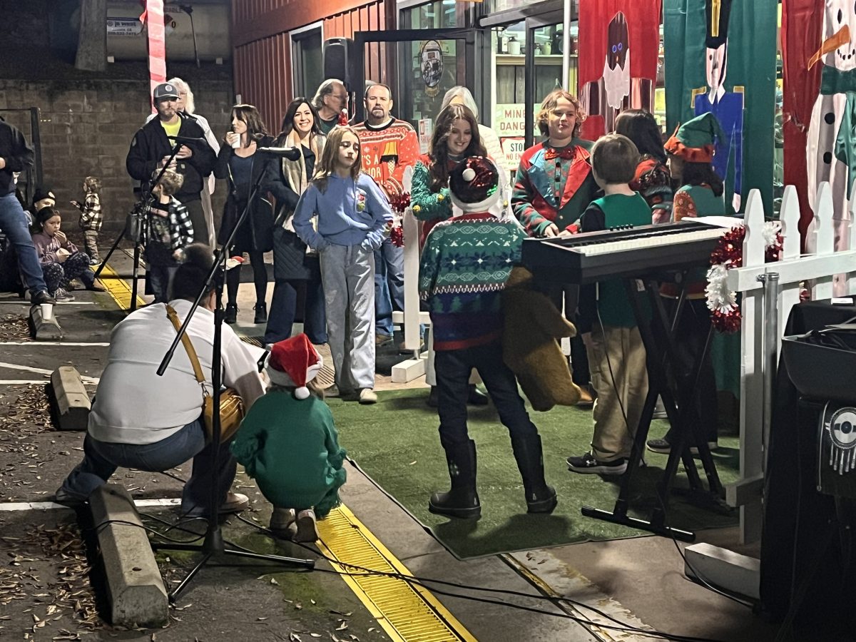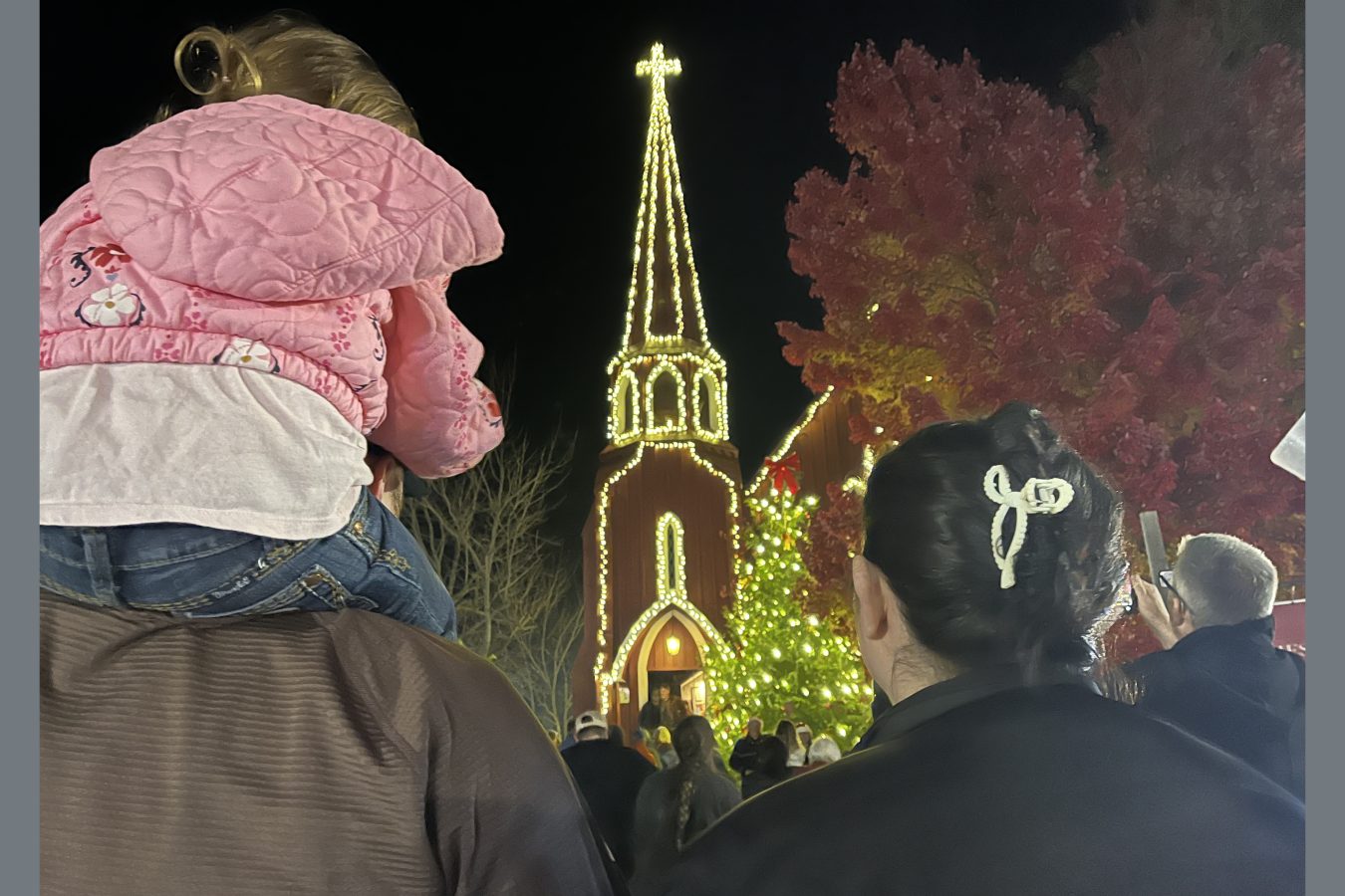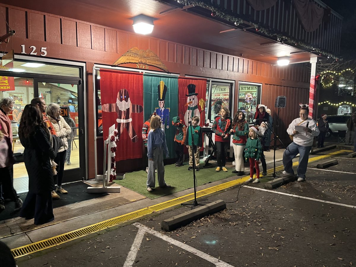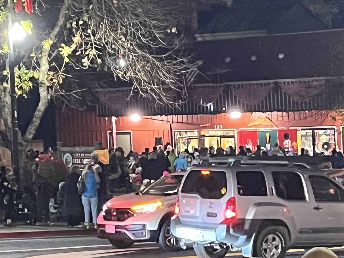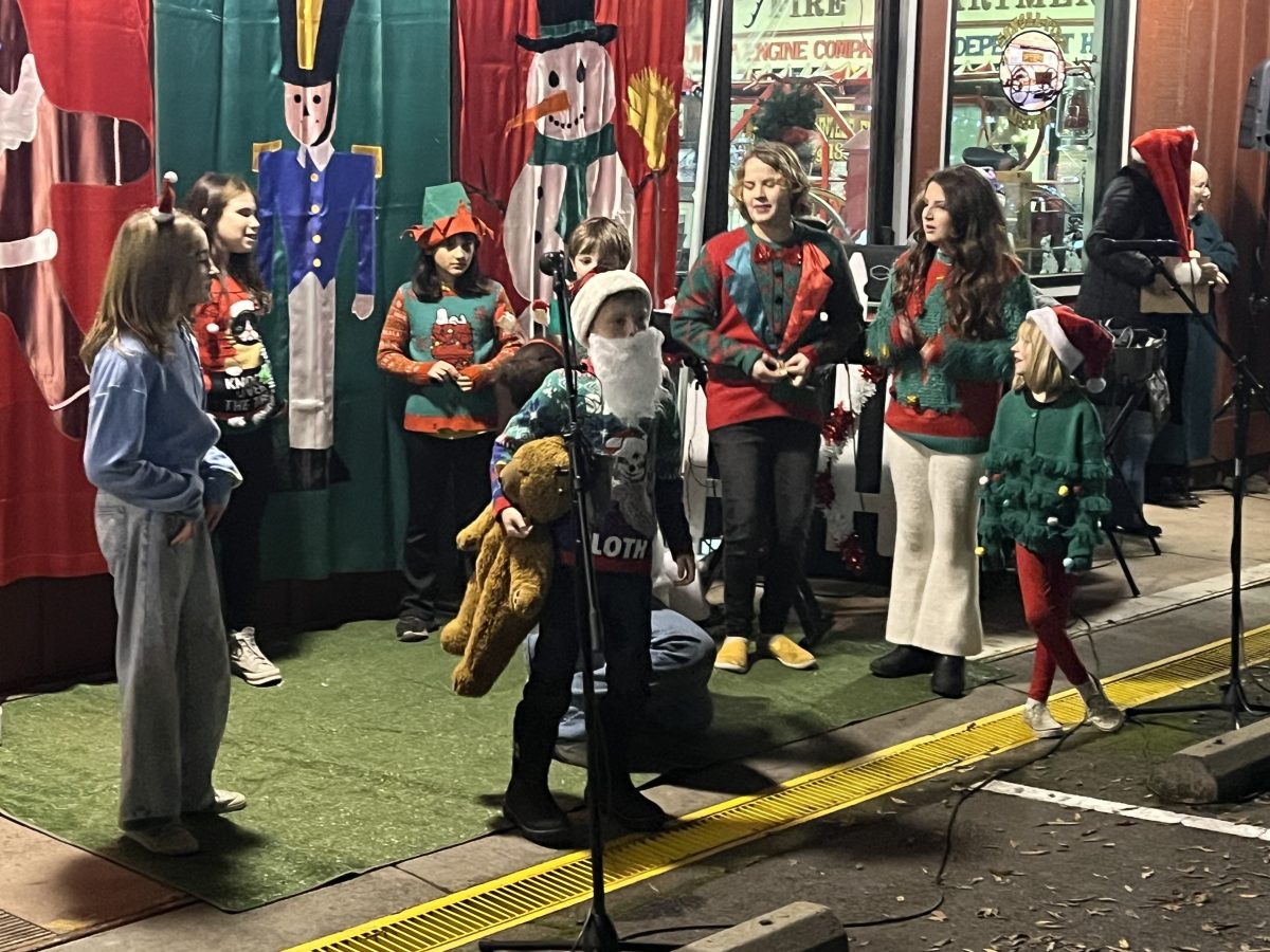 A crowd of several hundred people enjoyed the activities at the Sonora Fire Museum, where kids and adults performed skits and sang Christmas carols. Then, across the street, the Saint James Episcopal (Red) Church brought cheers from the audience as the Christmas tree was lit.