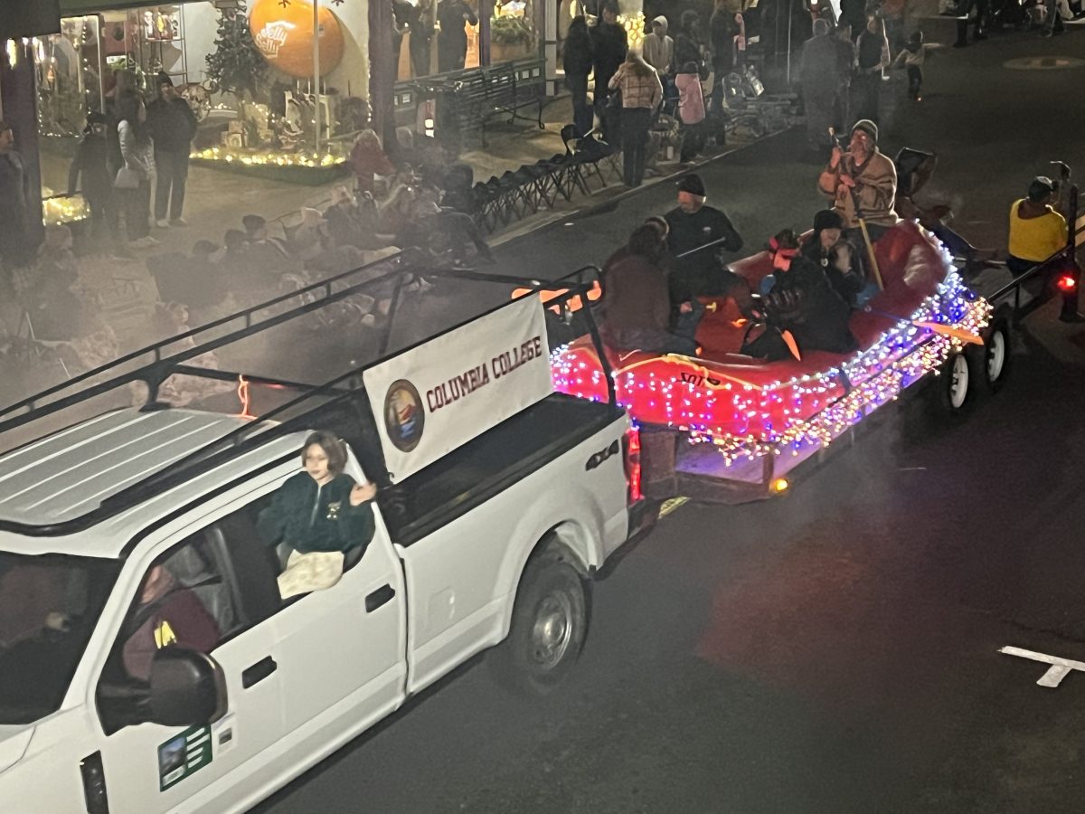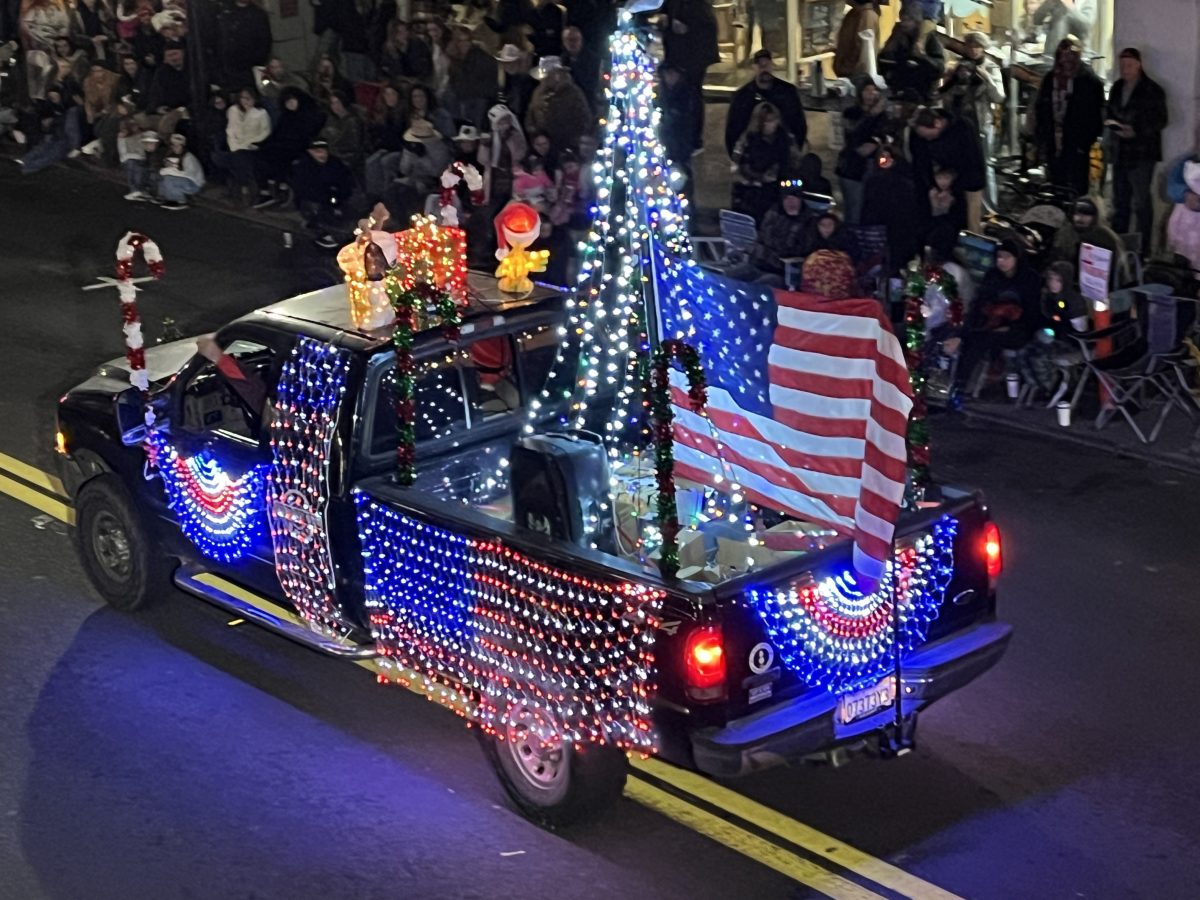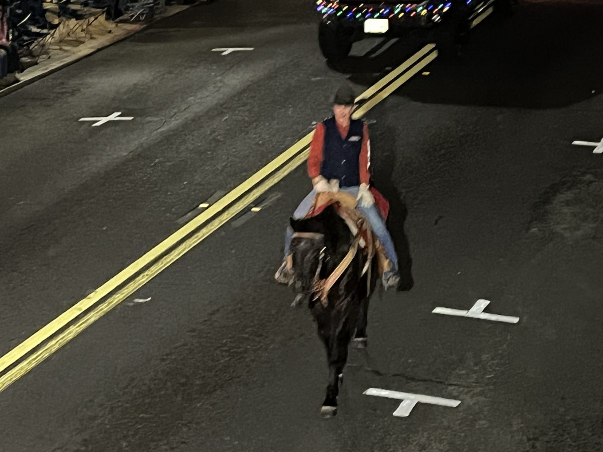 Last night, the crowd cheered, clapped, and tapped their toes as bands, like the Sonora High Golden Regiment, and colorful lights twinkled on floats along with dance groups, captivating everyone. They were Christmas characters topping the floats, like Rudolph the Red-Nosed Reindeer, the Abominable Snowman, and the Grinch, who received boos from the crowd. Horses and dogs were barking in the season.