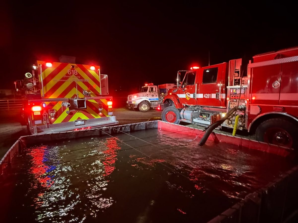 The flames broke out around 2:13 a.m. near Highway 132 at the Hayward Road intersection. When firefighters arrived, including two units from the Tuolumne County Fire Department (TCFD), the structure was fully engulfed in flames. Fire crews spent multiple hours dousing the structure with water until all hot spots were out.