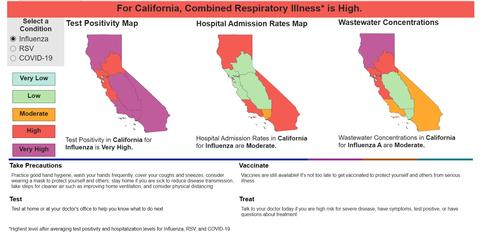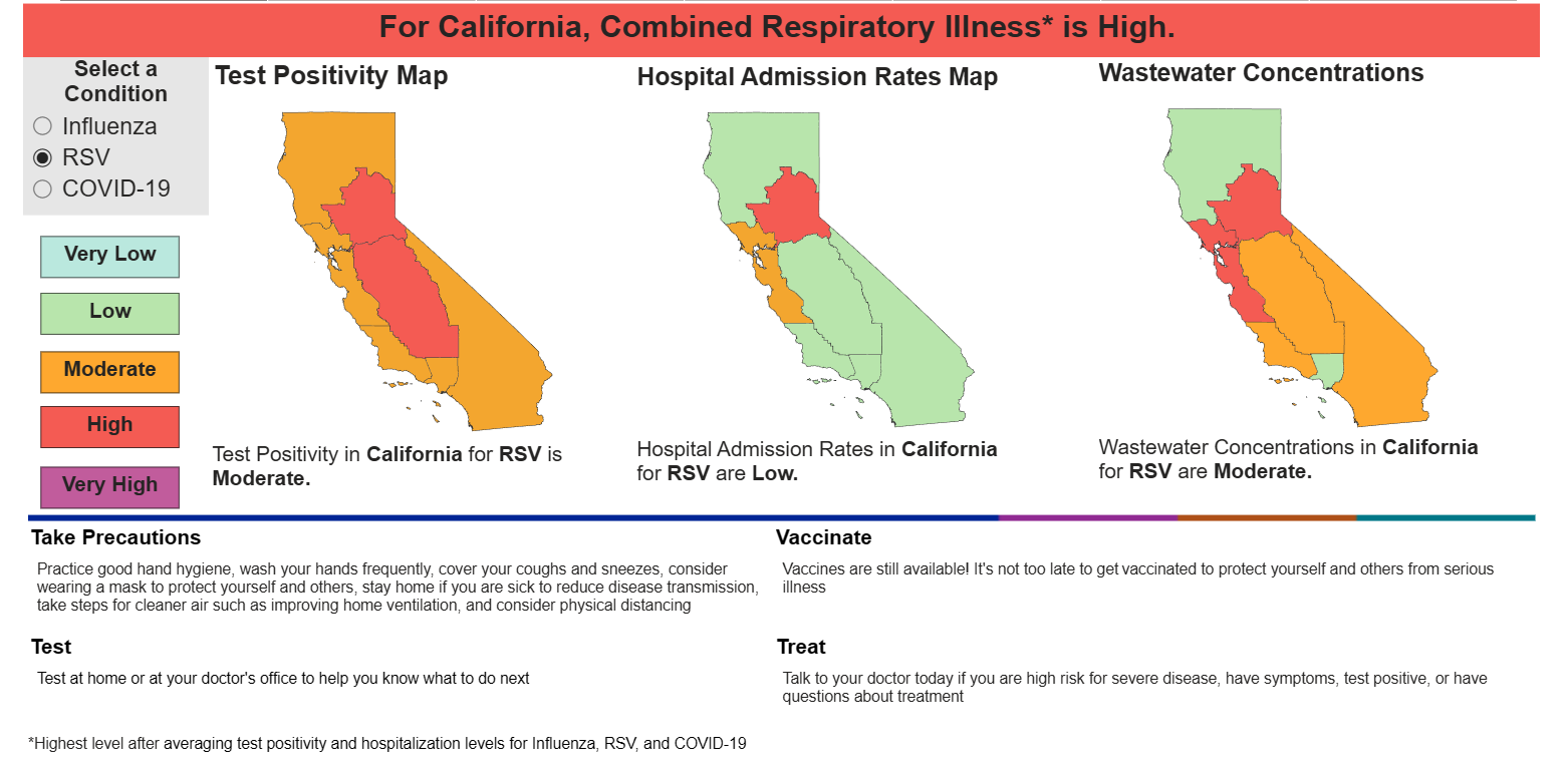 California Department of Public Health’s Tips for Staying Healthy this Virus Season and reducing your risk of catching and spreading respiratory viruses like flu, COVID-19 and RSV are below: