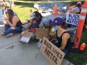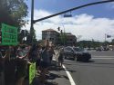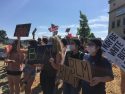 While crowds are now thinning, beginning around 2:30 Friday afternoon at Highways 4 and 49 an all-ages crowd of about 300 to 400 people, nearly all wearing masks and bearing homemade signs began arriving to take their spaces in the four quadrants of the intersection. Some even brought extra masks, sunscreen, water and snacks to share. To view photos of the event click into the image box slideshow.
