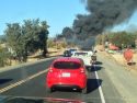 Update 6:30 pm: Cal Fire reports the roadway is back open. Traffic is backed up through Jamestown. Click here for a video link of the fire area.