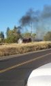 Update 5:45 pm: The fire is contained at two acres. Spears says, “The structure was an abandoned home and it was totally destroyed.” Highway 108 is still closed and Spears estimates it will be closed for about another hour. Crews will be on scene mopping up into the evening. Click here for a map of the fire area.