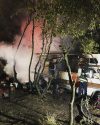 A couple of vehicles were destroyed by fire, and the blaze also burned a 100 ft. by 100 ft. spot of vegetation. CAL Fire reports that resources responded shortly after 1am. The fire was extinguished, and the engines were released, by around 2:30am. What caused the fire is not immediately known. No injuries were reported.