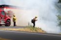 Update at 1:30 p.m.: CAL Fire reports all evacuations have been lifted as the forward rate of spread has been stopped for the half-acre grass fire named the “Dane Incident” burning along Columbia Way. Highway 49/North Washington Street has reopened to traffic, but Columbia Way is shut down between the highway and Leonard Addition Way. No injuries were reported in the fire.