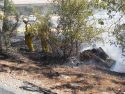 Calfire Captain Mike Spear says, “The call came in at 12:23 we have two Tuolumne Calfire department engines, three Calfire state resource engines and mutual aid with the City of Sonora, two hand crews from Benbow which is in Santa Cruz. They are covering for us while our crews are in Mariposa.” Capt. Spear noted that the fire is contained, control is estimated to take until 3pm. Spear also noted that the planes (air attack and spotters) were coming back from the fire in Mariposa when the fire started. He says, “They were returning at the time and didn’t need to use any of their retardant.”