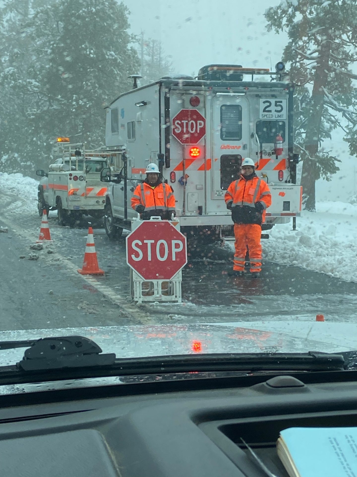 In District 10, Caltrans crews are using heavy equipment like the Snow Cat, shown in the image box working in the Peddler Hill/Long Barn area, to groom Highway 108 behind the closure gate from the snow park to Kennedy Meadows. Once flattened, the roadway will be ready for snowmobiles and other vehicles on tracks to take advantage of the fresh snow along with others like cross-country skiers to also join in the fun.