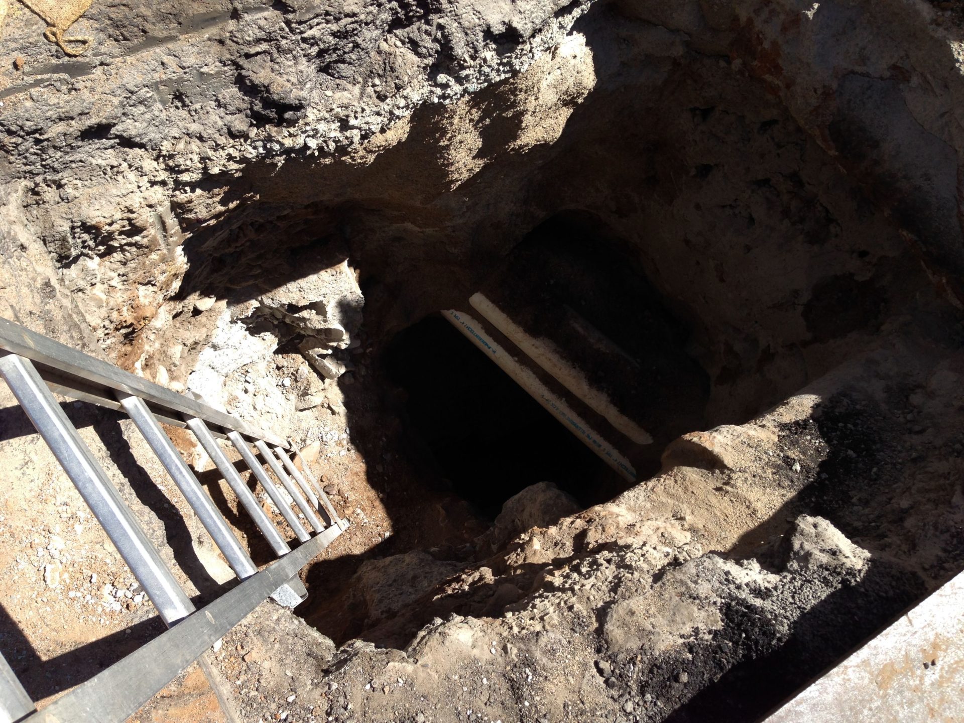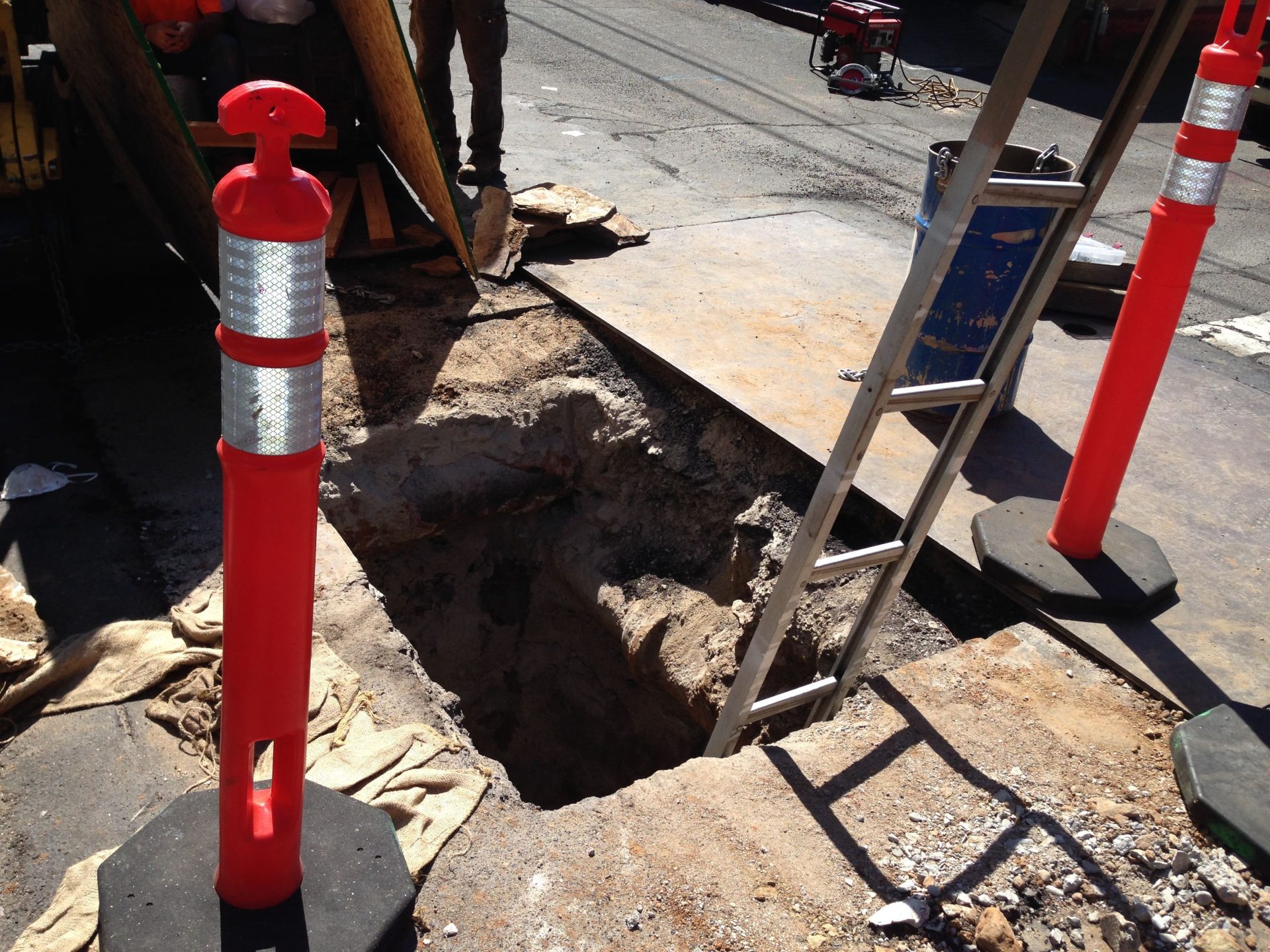 Sonora, CA — Sonora Public Works officials now know what caused a nine and a half foot deep sinkhole on Stewart Street. The roadway was shut down between Lyons and Theall Streets until three this afternoon. During that time, an AT & T engineer worked to remove a concrete conduit covering an old storm drain, revealing the problem.