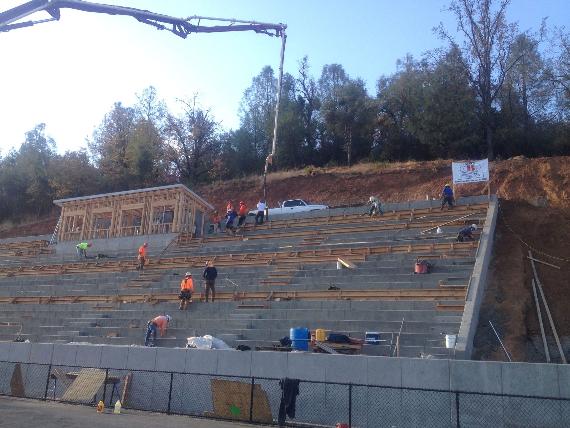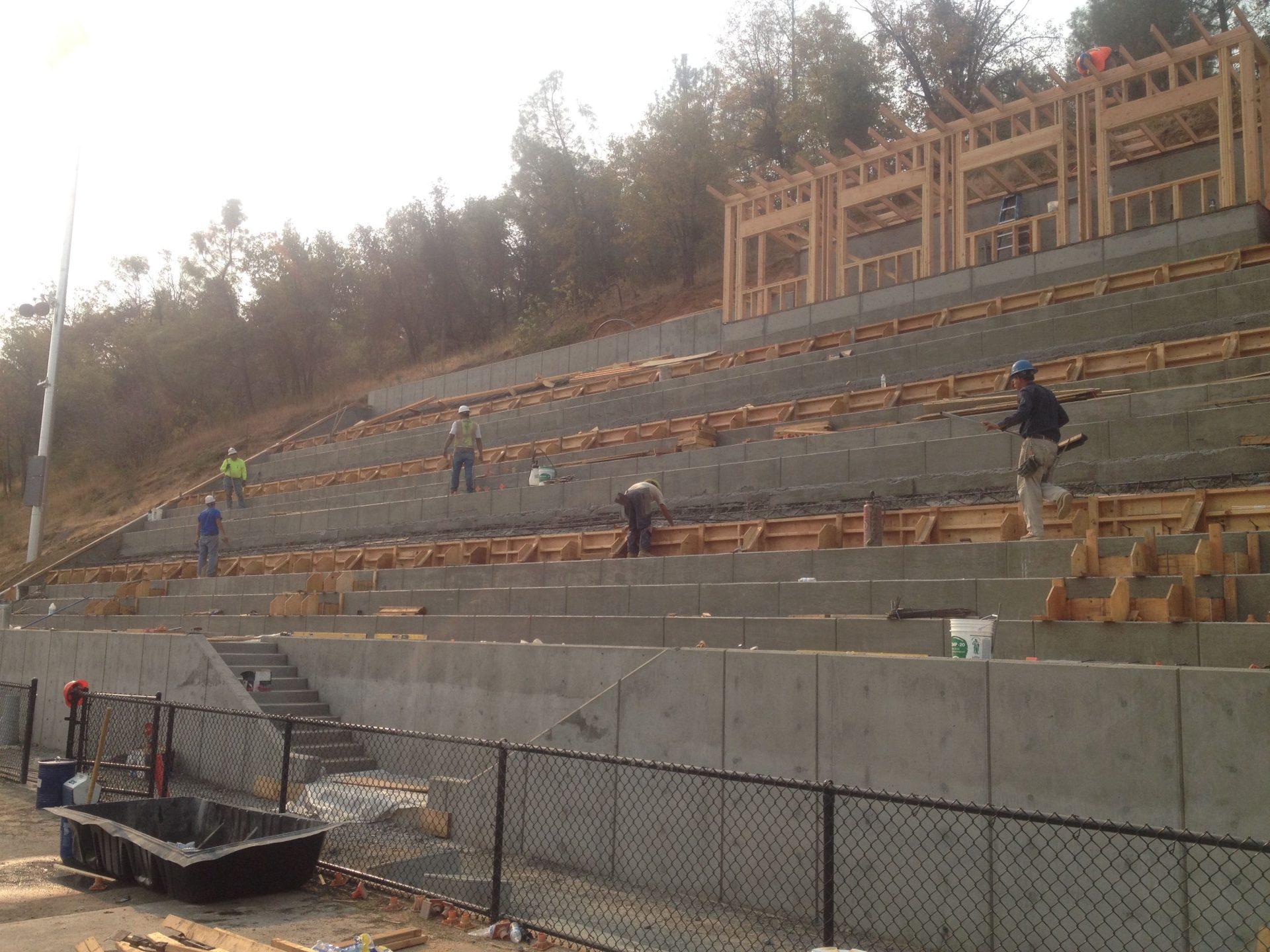 Tuolumne, CA — The last of the concrete for the Summerville Stadium bleachers was poured today allowing school officials to set an opening date in mid-October.