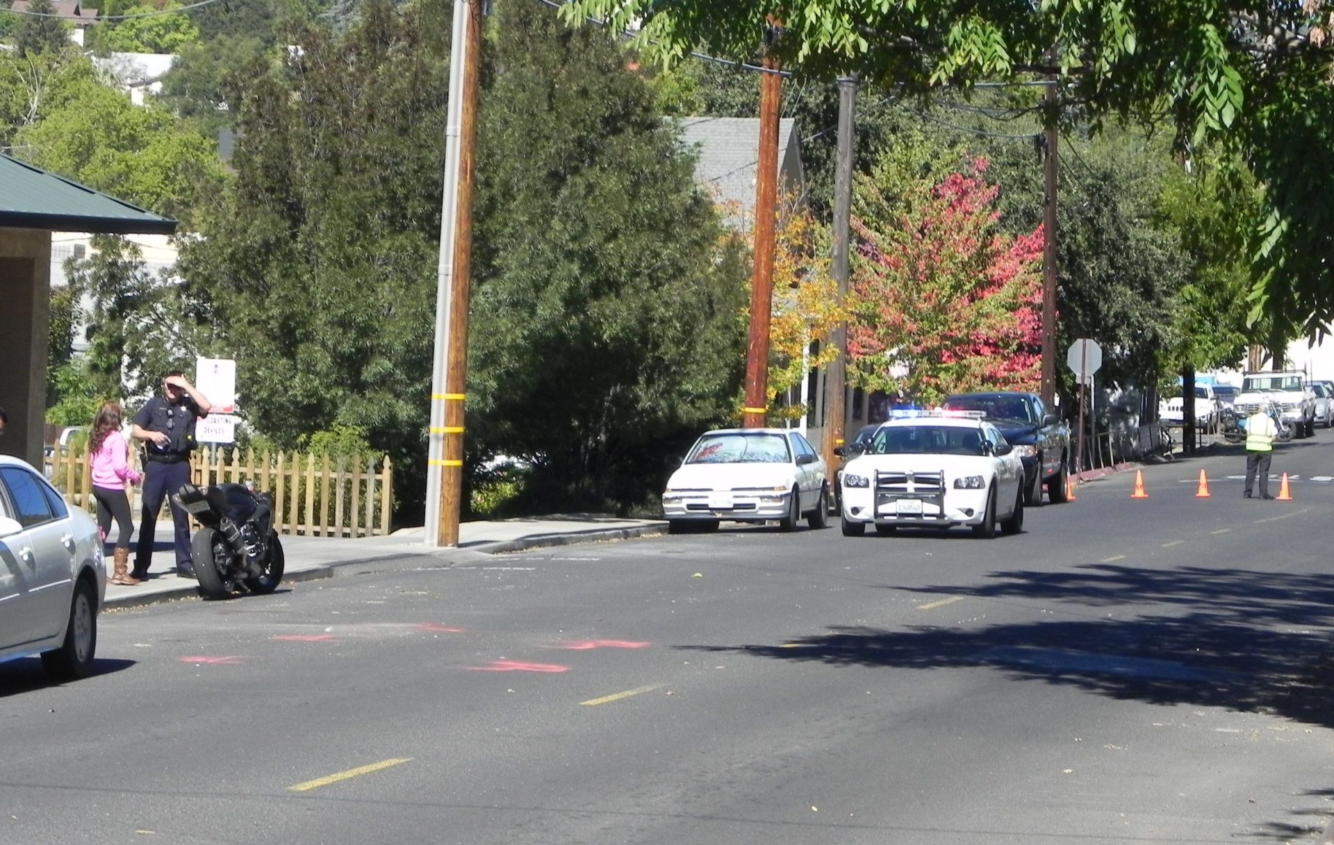 Sonora, CA — Sonora Police are conducting one-way traffic control on  Stewart Street due to a vehicle versus motorcycle accident.  The crash is between William and Gold Streets near the Hueton Memorial Chapel. Traffic is getting backed up and Police are asking motorist to avoid the area if possible by using Washington Street as an alternative route. There is no word on injuries at this time.