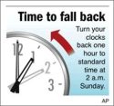 Tonight, the time to set your clocks back is 2 a.m. Sunday or you can always fall back before you go to bed Saturday night.