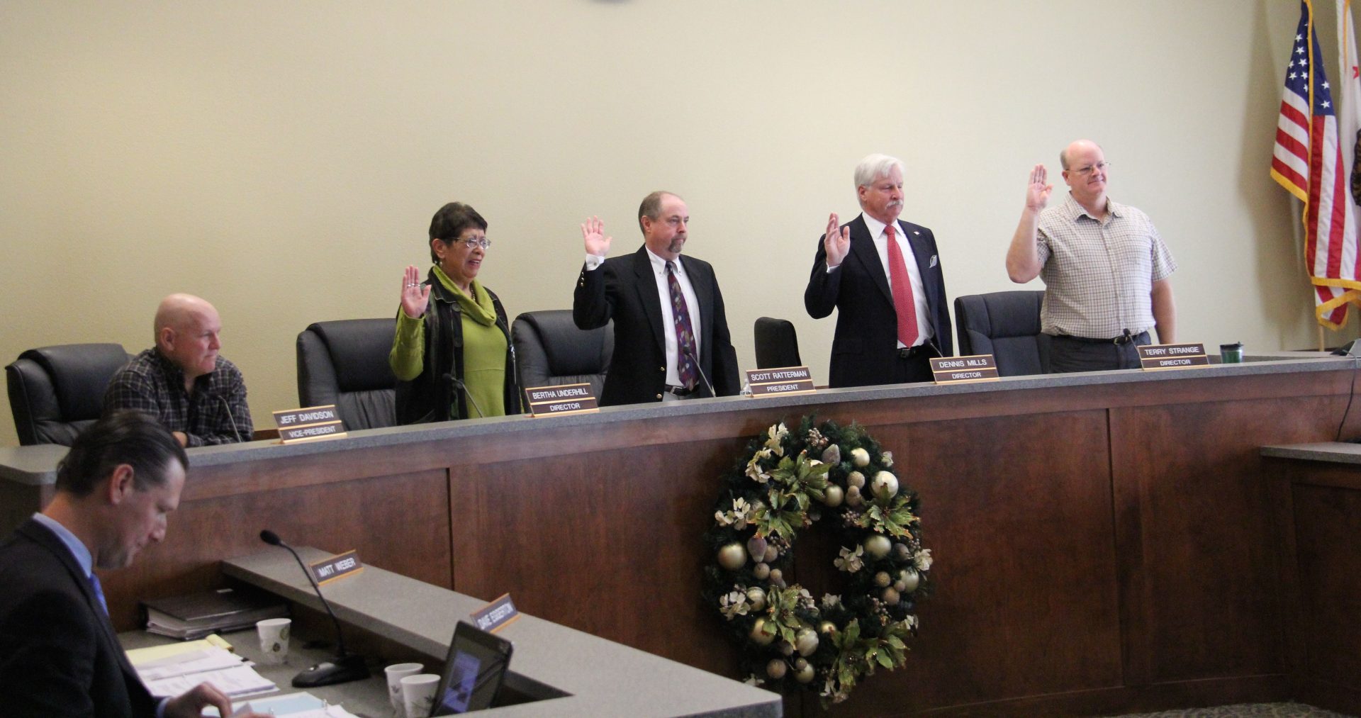 San Andreas, CA – The new Calaveras County Water District (CCWD) Board held its first meeting yesterday that included three newly elected members. After being sworn into office, the Board got right down to work.