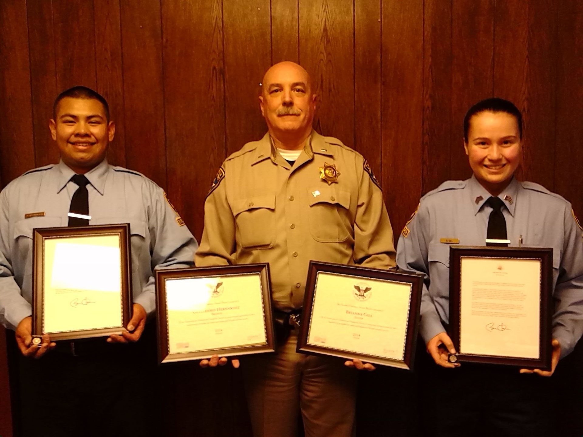During a training session at the unit office, the two were recently presented their award plaques by CHP Lieutenant Dewayne Lewis in recognition of their hard work. Brianna was given the Silver Award while Guillermo received the Bronze Award.