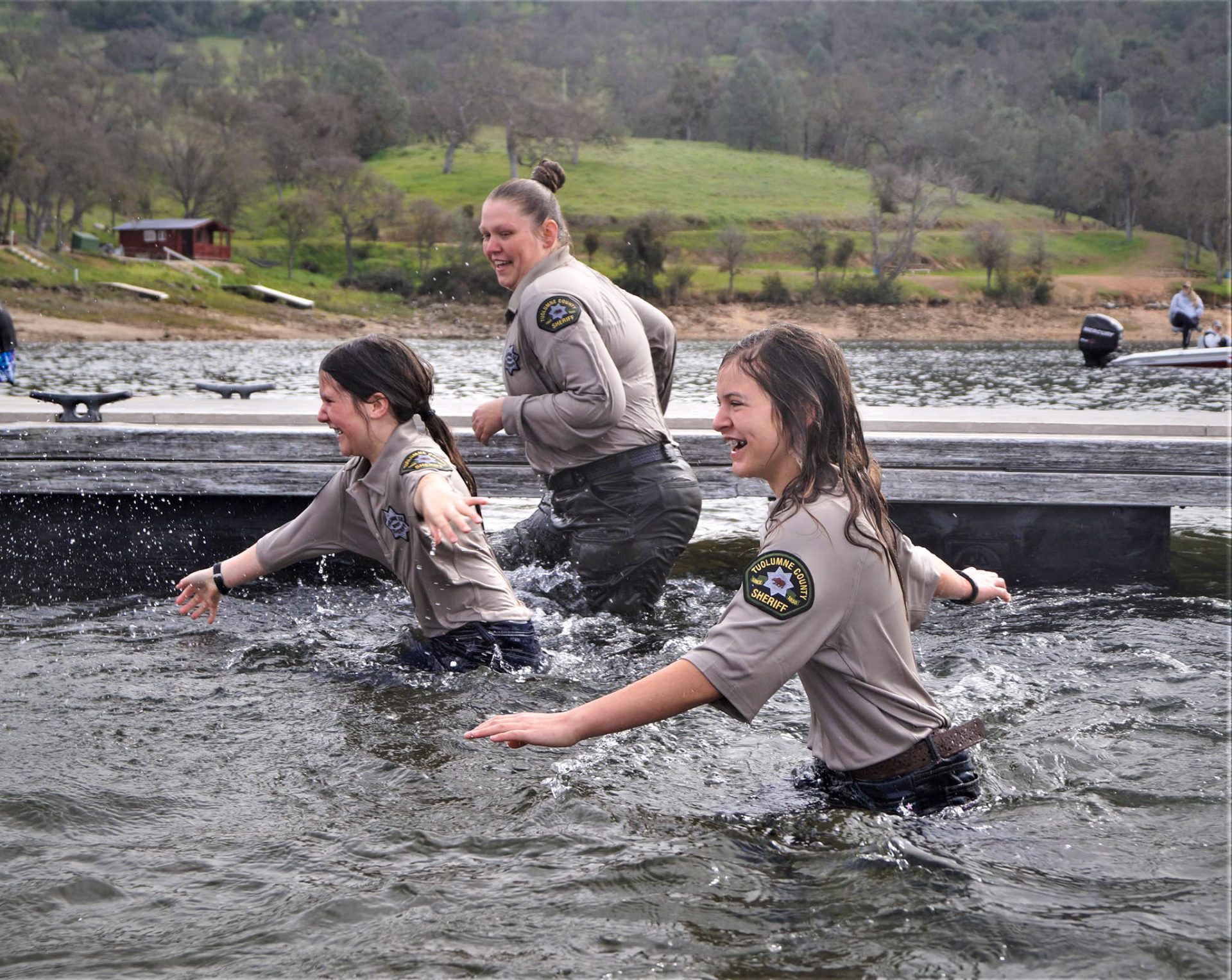 Jamestown, Ca– Polar Bear Plunges, a charitable event that started in Canada in 1920, has grown in popularity worldwide, it involves jumping into brisk water to raise money for various causes. Locally, law enforcement came out in force to take the dive at the Lake Tulloch Campgrounds on Saturday afternoon to support the Special Olympics.