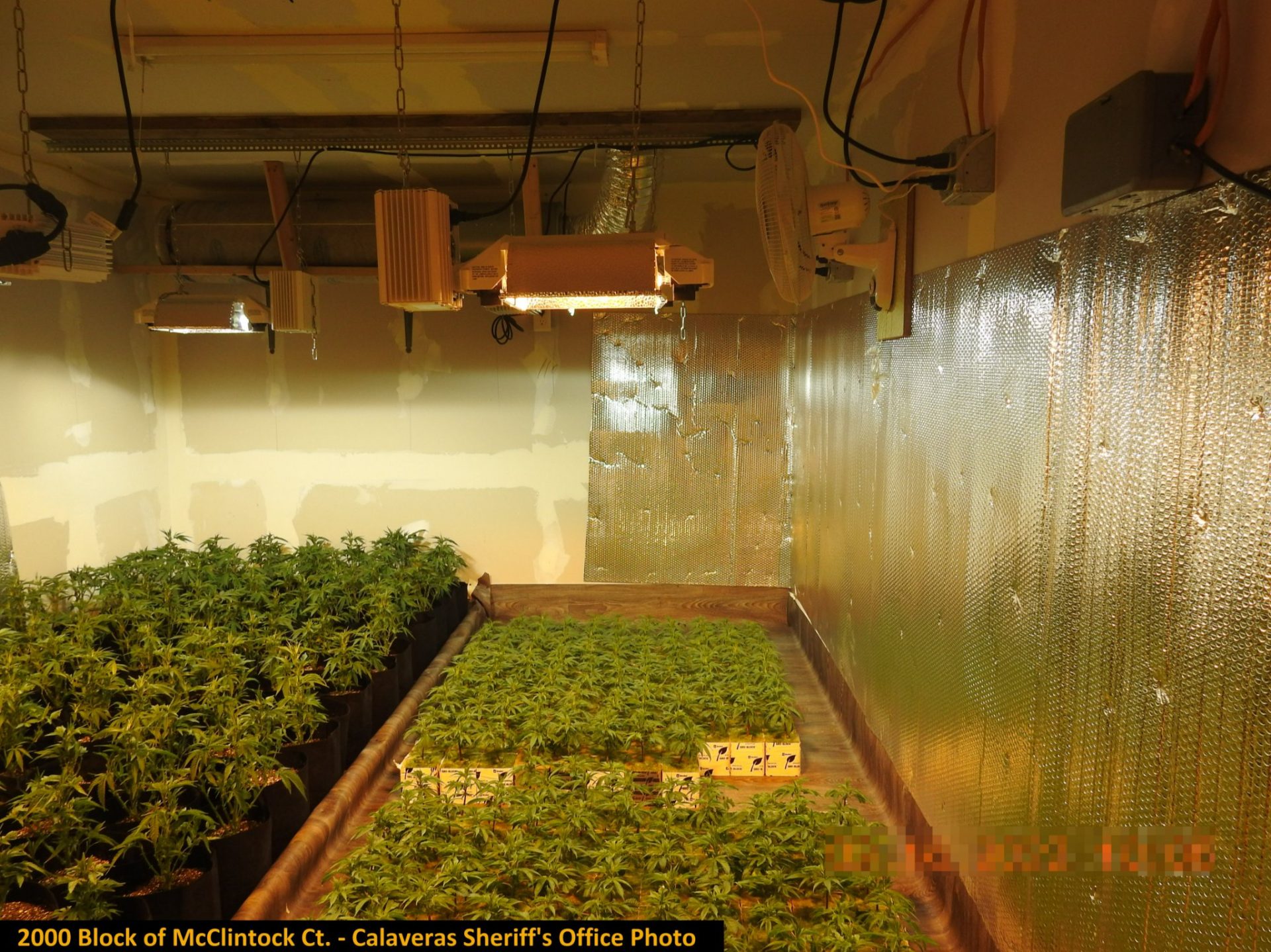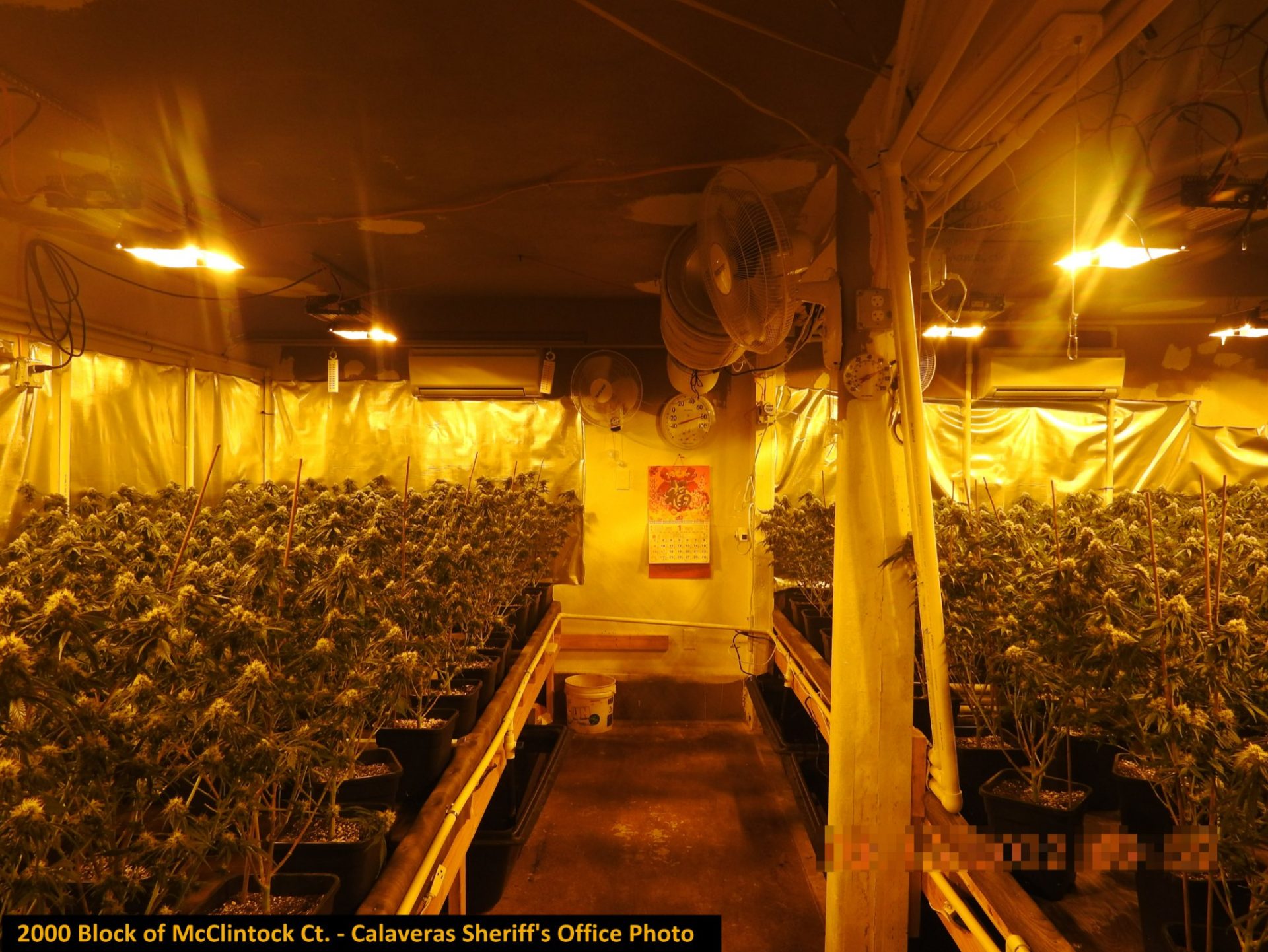 A second raid on Thursday took place in the 2000 block of McClintock Court in Valley Springs with a metal shop being used for an illegal grow. That facility was also tagged for building code violations. Deputies seized 1,208 growing marijuana plants and several pounds of processed pot. Two suspects, Mei Juan Liu, 38, of Valley Springs, and Da Ghuang Wu, 46, of Valley Springs, tried to run from deputies but were quickly caught. They were cited for several drugs charges including maintaining a drug house.