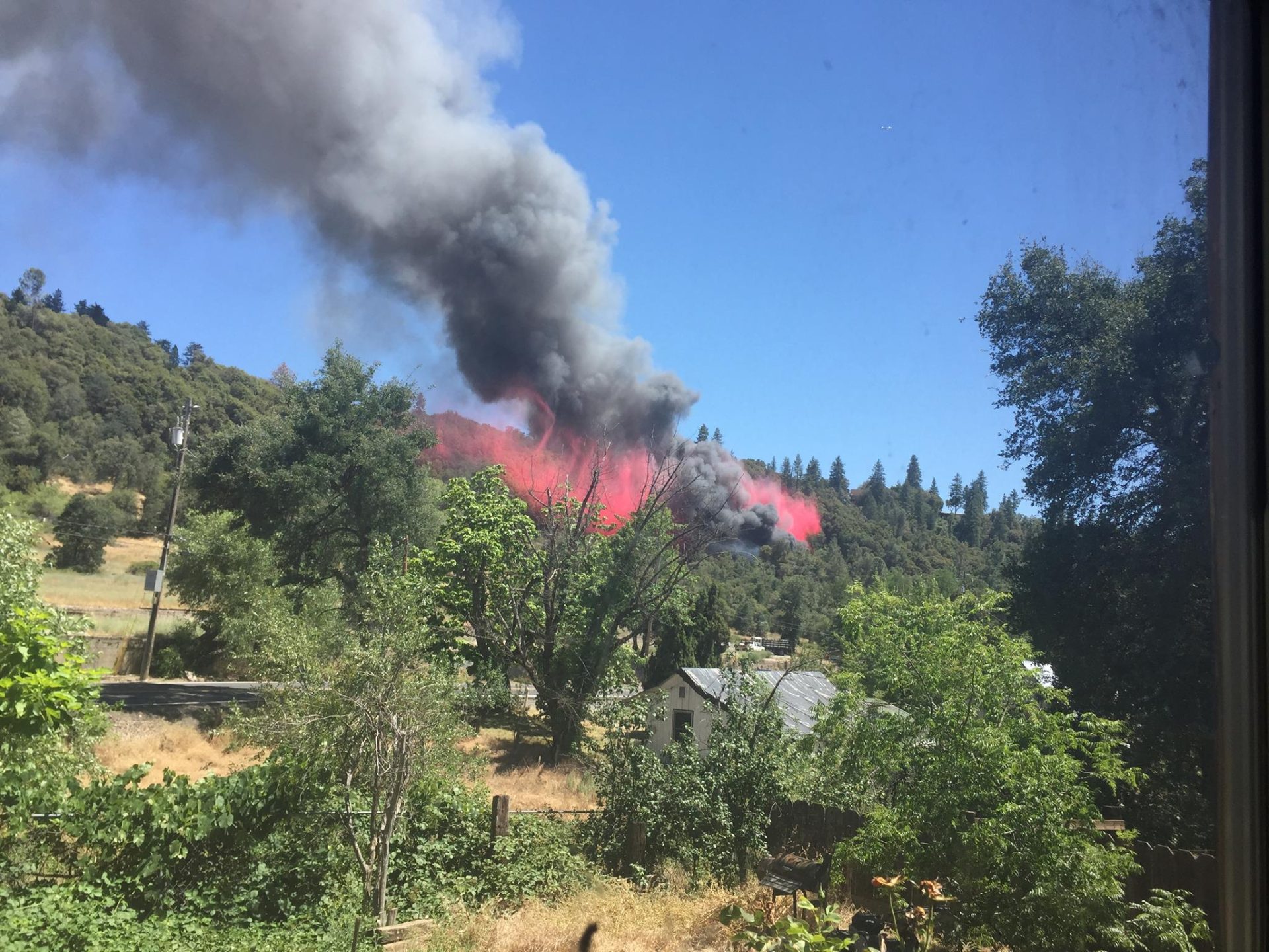 Update 3:09 p.m.: Cal Fire is dipping out of Willow Springs Pond to use on the fire. A special thanks to our community news partner Tami Cooper and Courtney Anne Holmes for sending in these photos.