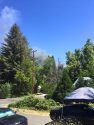 Update 3:30 p.m.: Cal Fire reports that the two-acre fire has been contained. Columbia Air-Attack has been released and fire crews are mopping up. PG&E is working on the downed power lines. It is yet unknown if there were any residents in the double-wide trailer home that burned. A special thanks to our community news partner Denise Croghan for sending in a photo.