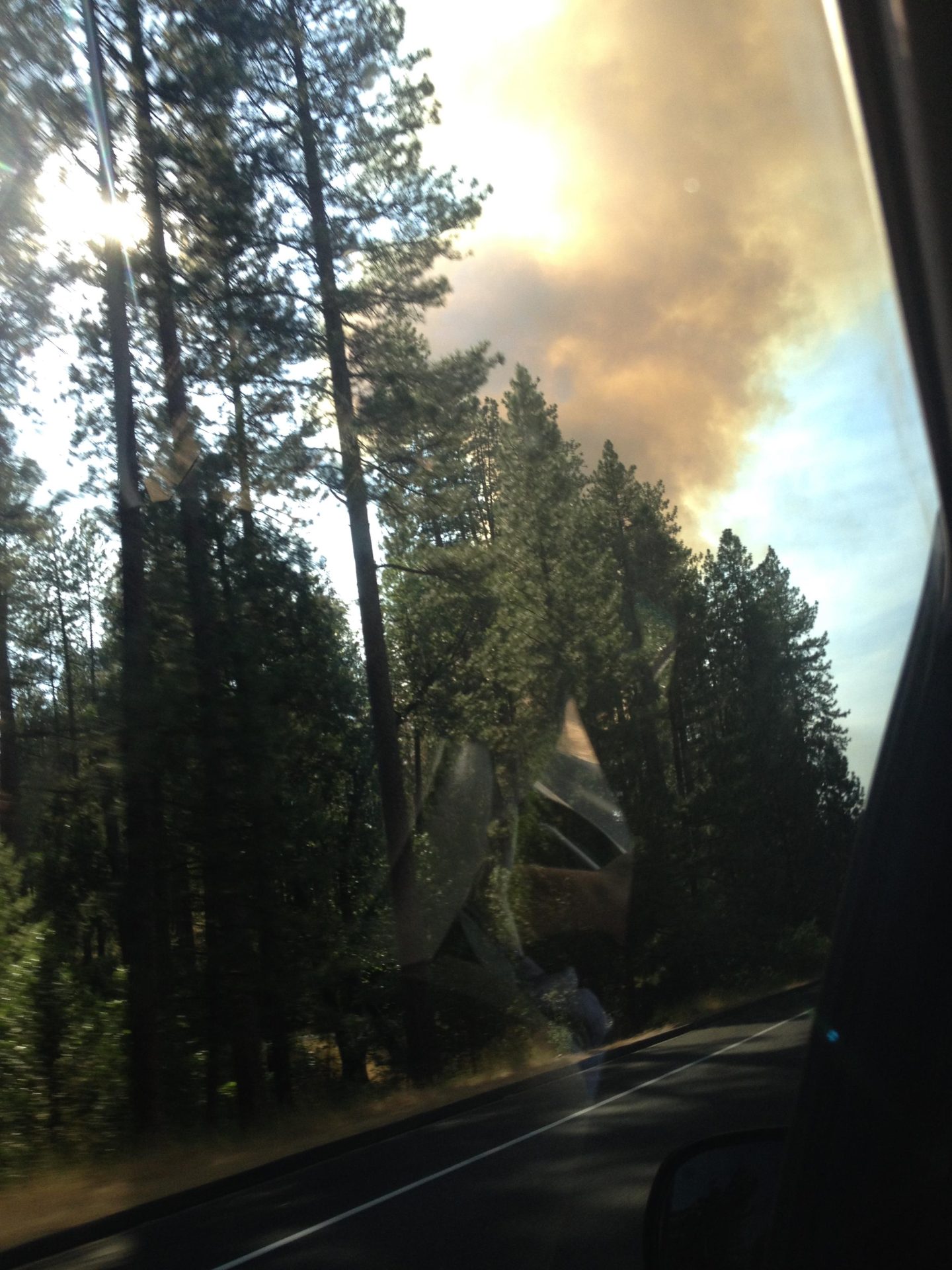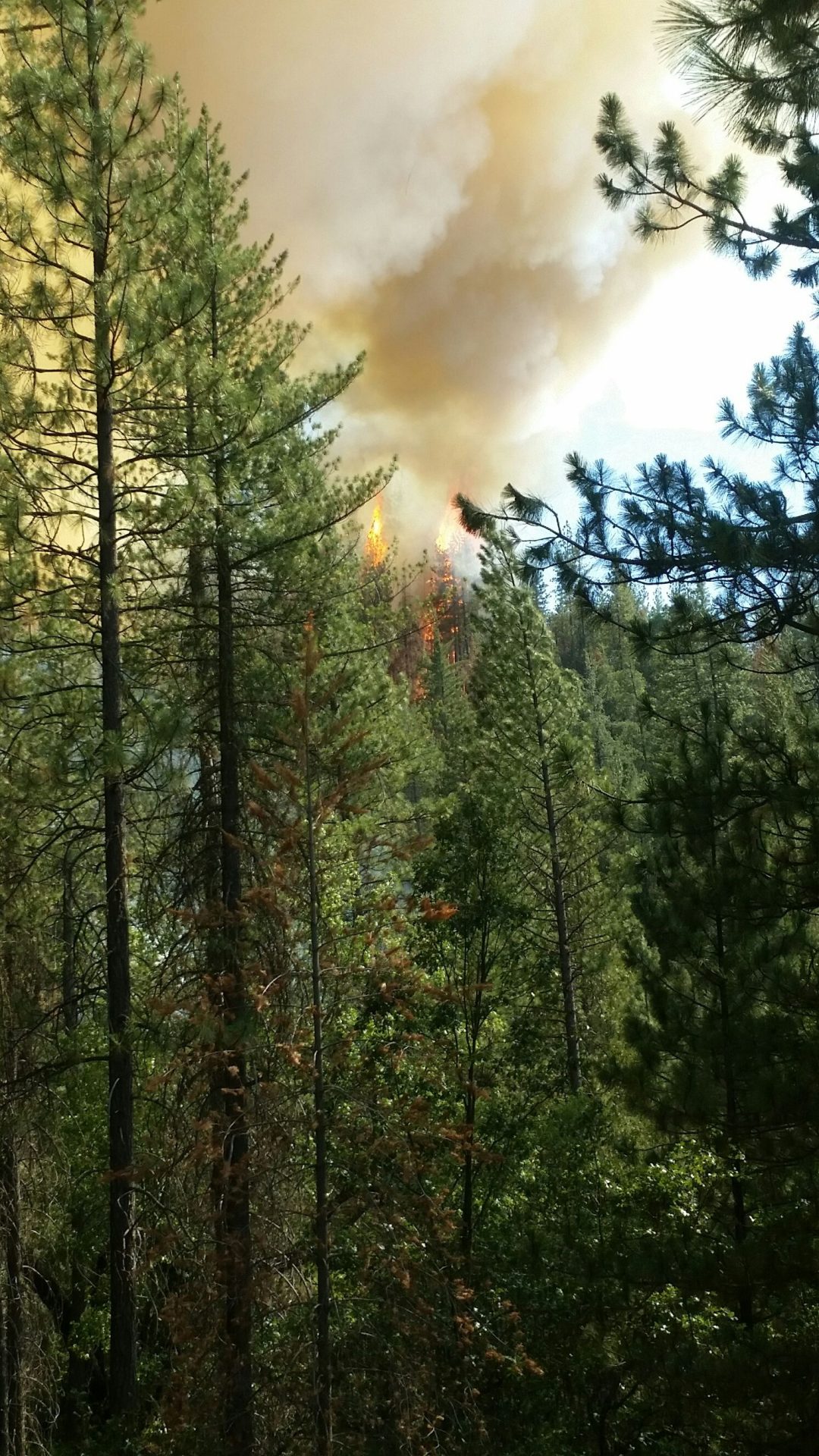 Update on 7-29-15 at 8pm: CAL Fire spokesperson Lisa Williams reports that the Big Creek Fire is up to 150 acres. Highway 120 remains closed from Sprague Road to Hell’s Hollow Drive. Some spot fires have been reported in the area.