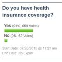 In a recent informal myMotherLode poll the question “Do you have health insurance coverage?” was asked. The results of the three day poll; 91 percent of the 721 votes were Yes, and 9 percent No. In related news California released new Covered California health plans will increase by up to four percent next year.