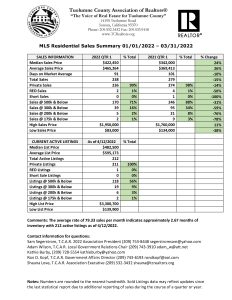 Sonora, Ca– A hot housing market is getting hotter as the median sales price for a home in the Mother Lode has risen 24% and is now at $422,450. Tuolumne County Association of Realtors has provided the data that also shows the amount of time a house spends on the market has dipped below 100 days with the average sale at 91 days, a decrease from 101 days that the market saw at the start of 2021.