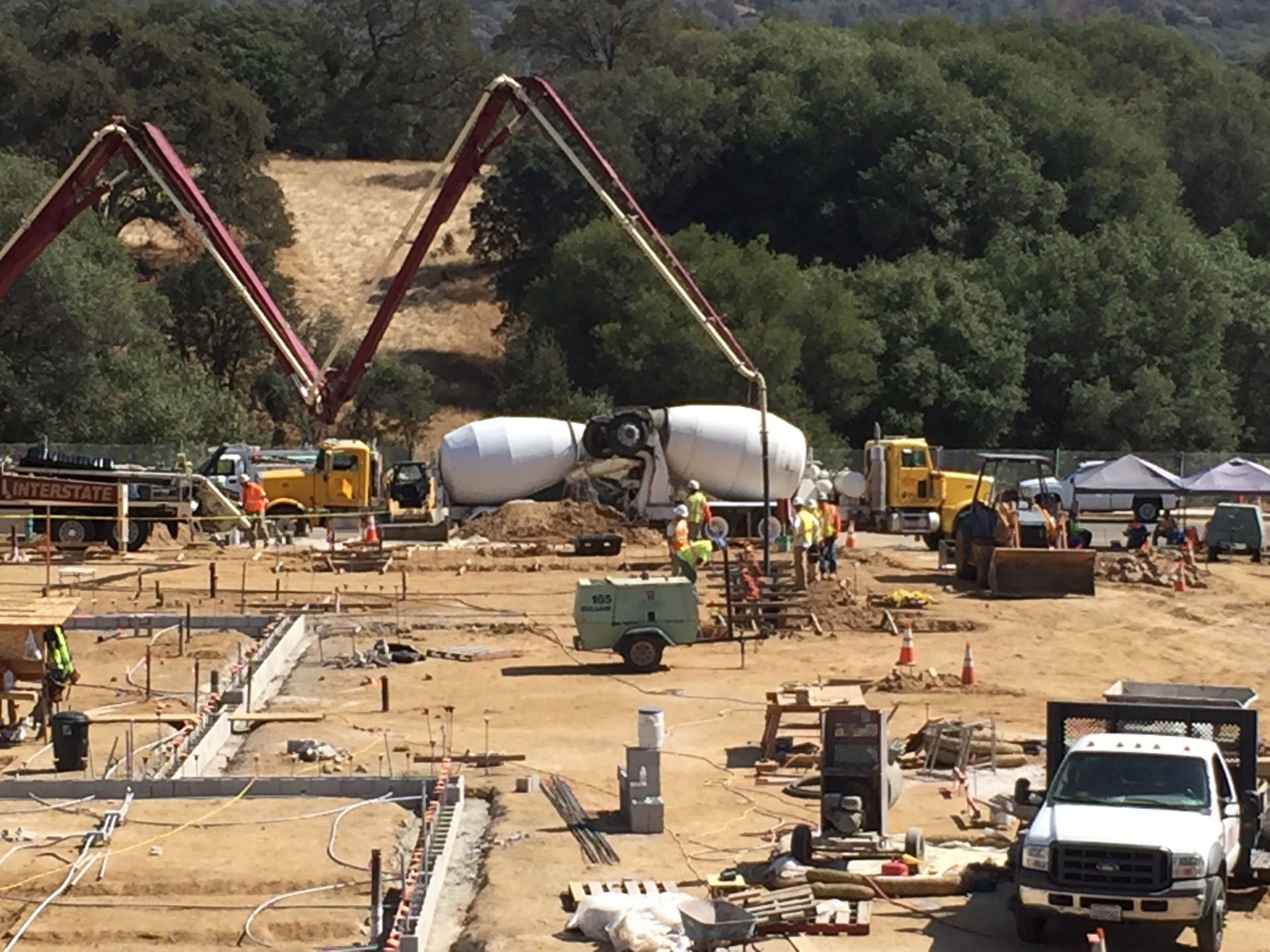 Frank explains, “One of the concerns that we had out on site was we ran into rock, no surprise, this is Tuolumne County. It was a little more excessive than we would have wanted but we had a great local firm, Njirich & Sons, who’s working with the contractor and working with us in expediting the removal of that rock …to get a certified pad ready for us to be able to start [building] now, up… vertical.” Strohman further explains, due to how close the site is to Highway 108, blasting with dynamite is not allowed. The rock removal process was described as “boulder busting” where a hole drilled into a rock is filled with water and a shock wave through the water breaks the rock apart. In other areas Strohman noted expanding material was used. Strohman confirmed the rock that was removed is available on site in two stockpiles for other county projects.