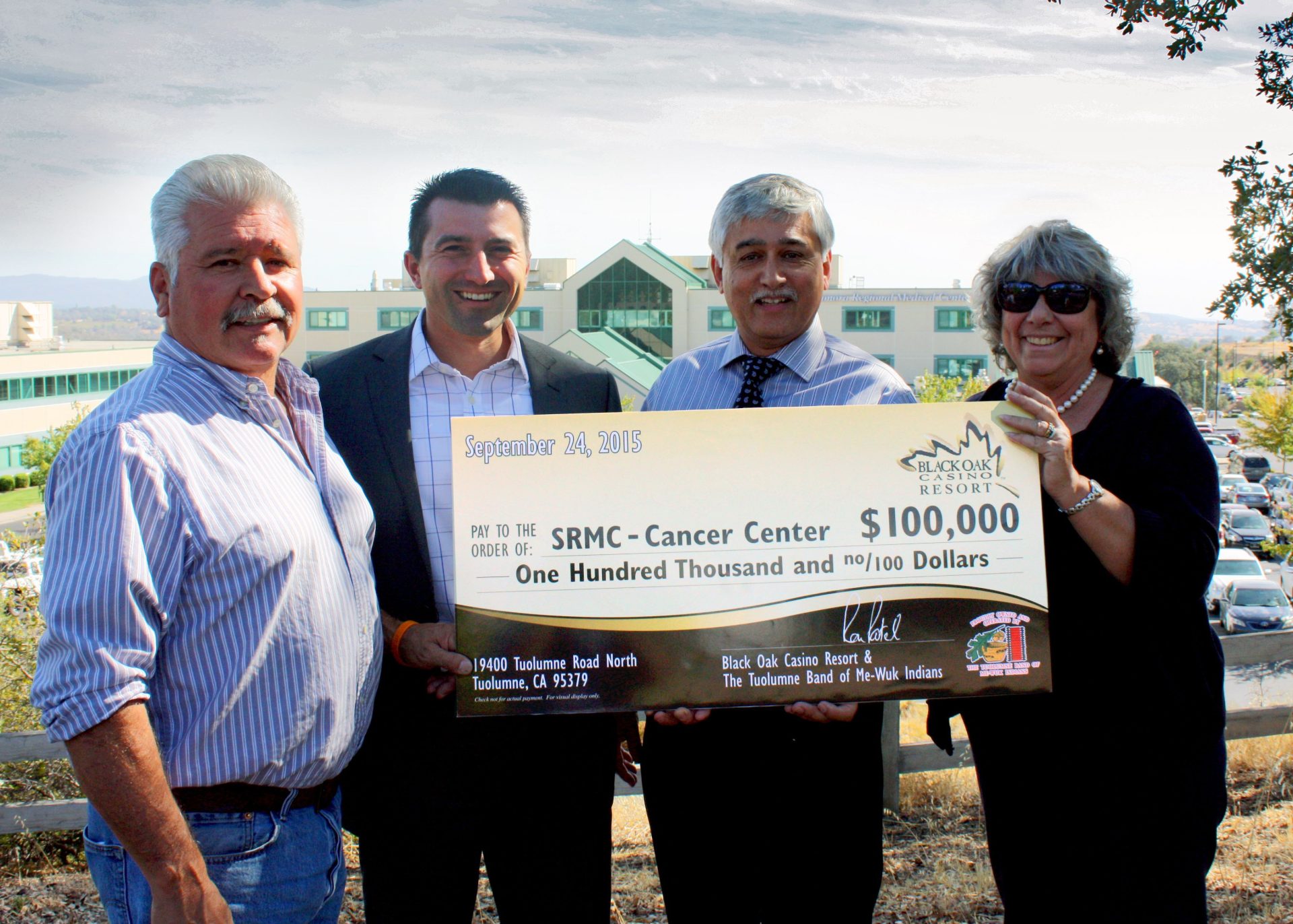 According to Sonora Regional Medical Center (SRMC) administrators, the board of directors capital campaign for the cancer center received a recent, significant joint check totaling $100,000; $50,000 each from the Tuolumne Band of Me-Wuk Indians Tribal Council and Black Oak Casino Resort. Their support edges the campaign total to date up to $1.9 million and within $1.1 million of the board goal.