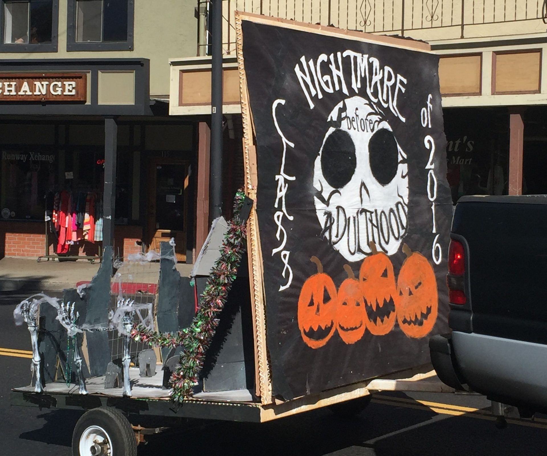The spectacle led off from Washington Street shortly after 2:20 p.m. with the school’s marching band The Golden Regiment followed by a mélange of colorful, movie-theme class floats and classic cars. Helping facilitate the pageantry, Caltrans maintained an hour-long official Highway 49 closure between Cowan and Green streets from 2 to 3 p.m., as City of Sonora and police department personnel provided additional support with traffic. Traffic was largely back to normal shortly thereafter.